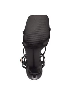 - Faux leather upper in a dress sandal style with a square open toe