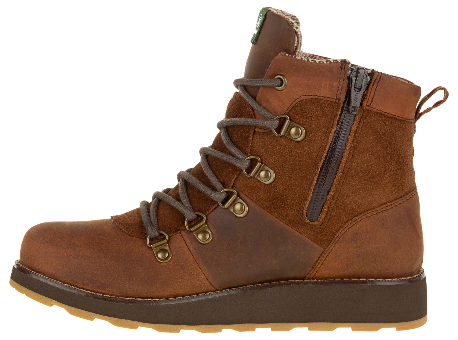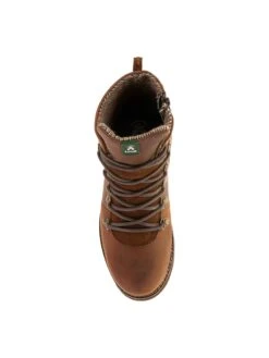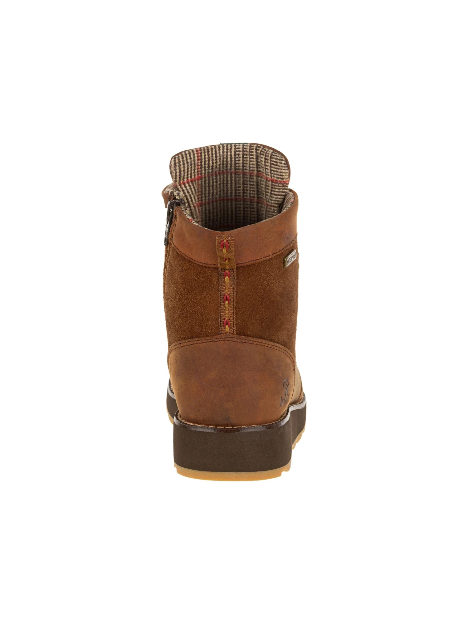 - Seam-sealed waterproof leather and suede upper in a lace-up winter boot style with a round toe