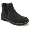 - Waterproof leather upper in a winter boot style with a round toe