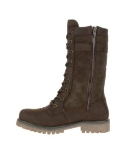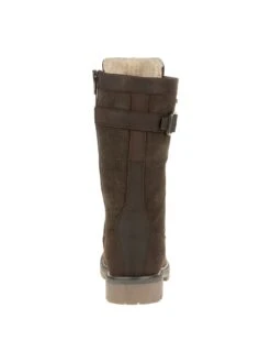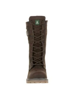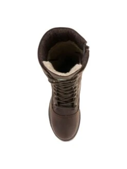 - Waterproof leather upper in a tall lace-up winter boot style with a round toe