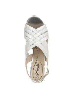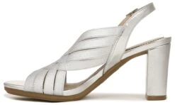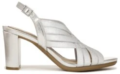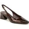 Stretch the limits of comfortable and chic in these womens slingback dress shoes. Woven stretch gore upper with open toe, slingback heel strap with adjustable buckle, lining at the toes to keep you secure, and side cutout detailing. Linings and insole board partially crafted with recycled materials.