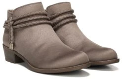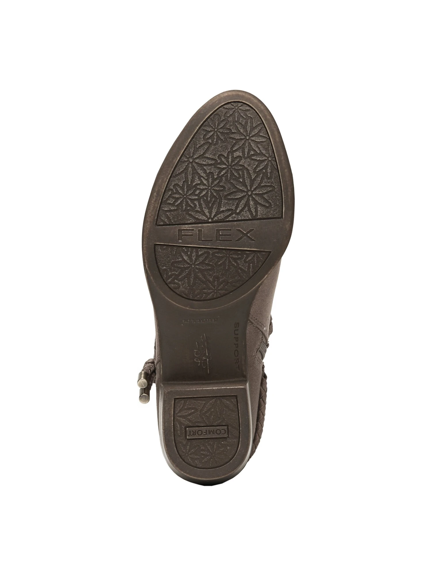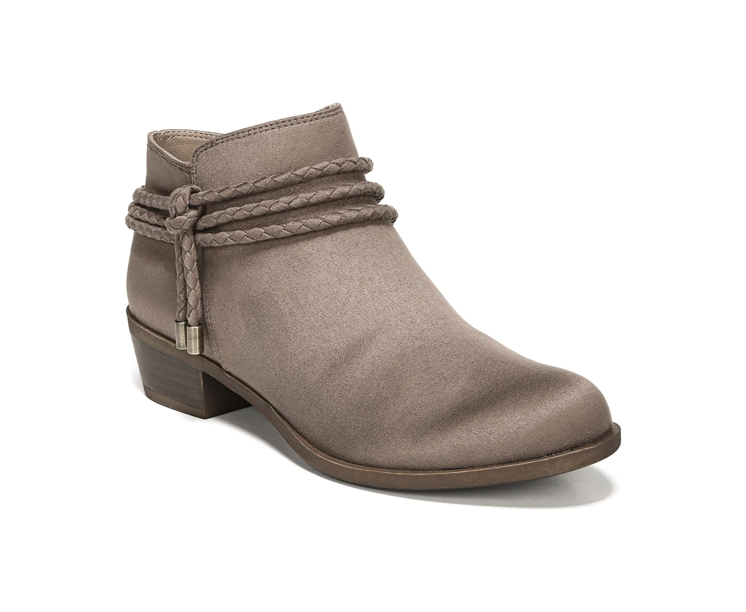 Western-inspired and so sophisticated, this comfortable bootie is a must. Microsuede upper with an inside zip, wraparound strap detailing, and metallic aglets.