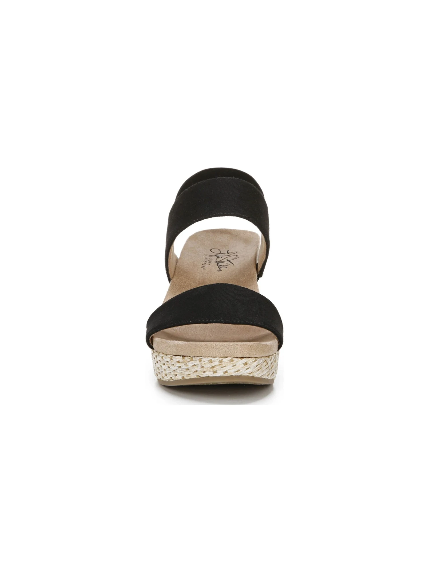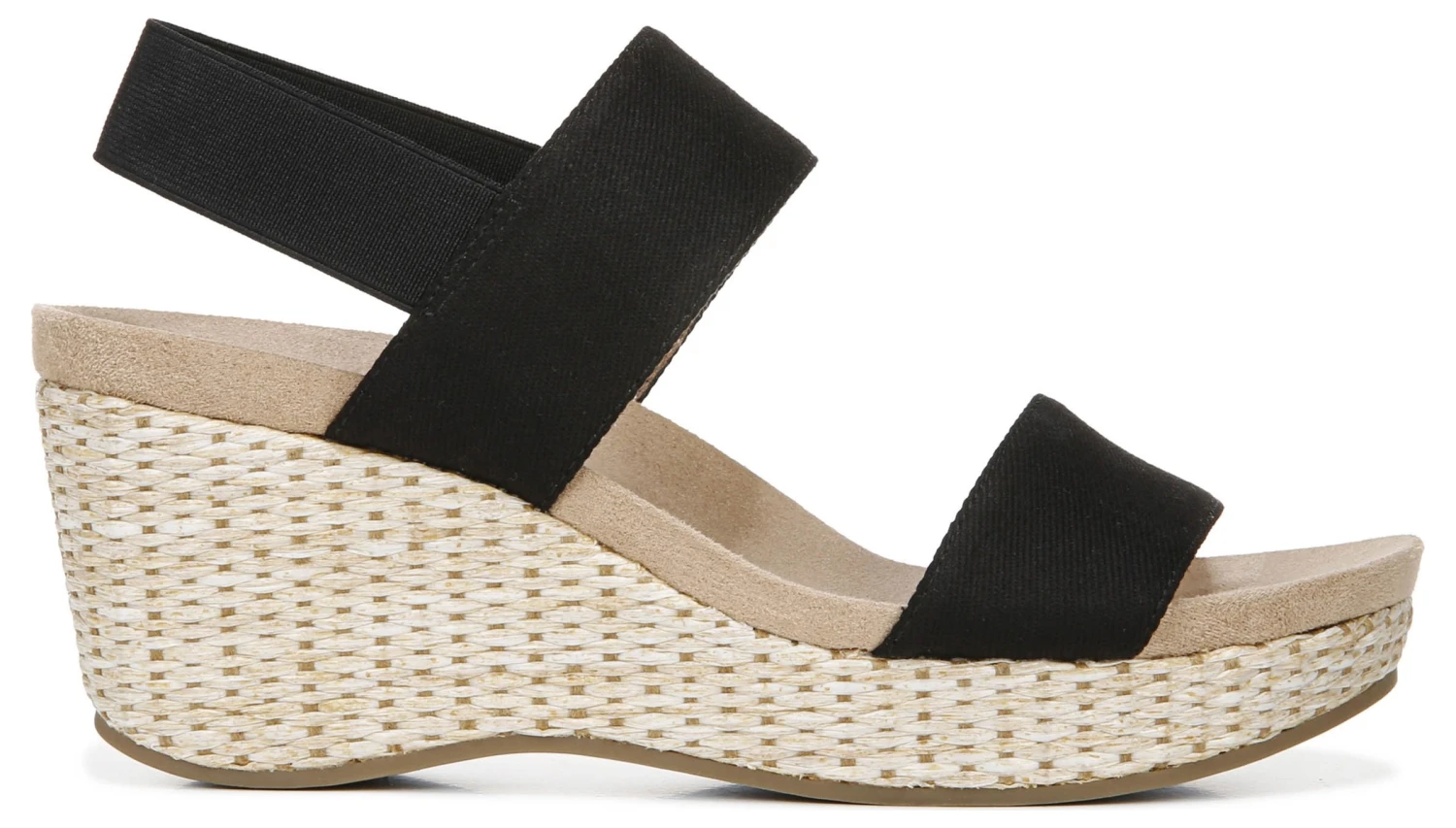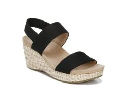 Keep your options open in the Delta wedge from LifeStride. Fabric upper with an open toe, slip-on fit, woven heel, and elastic goring slingback strap for extra flexibility.