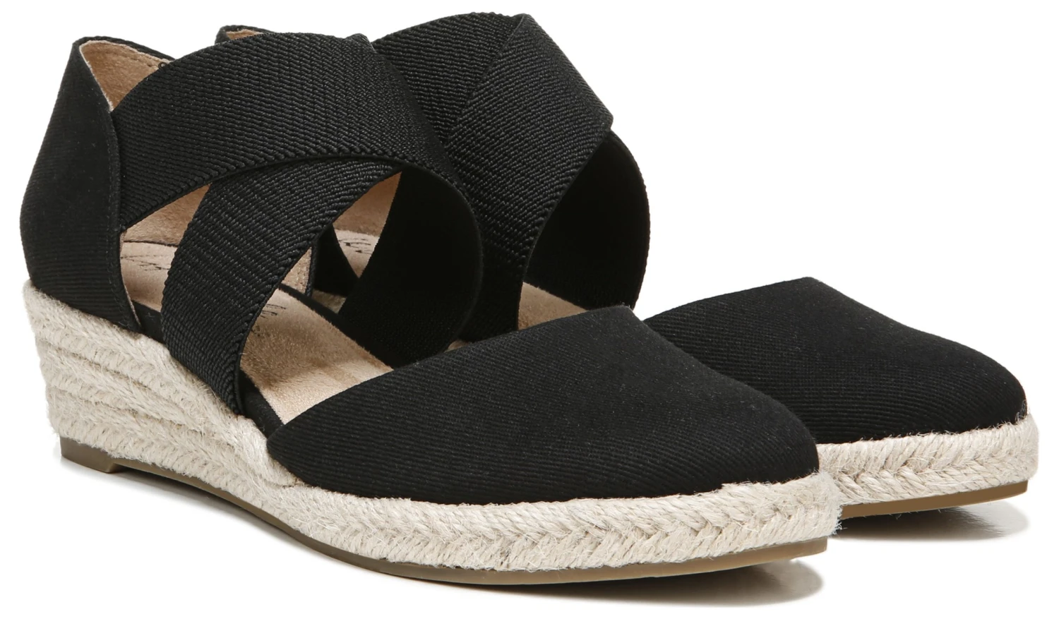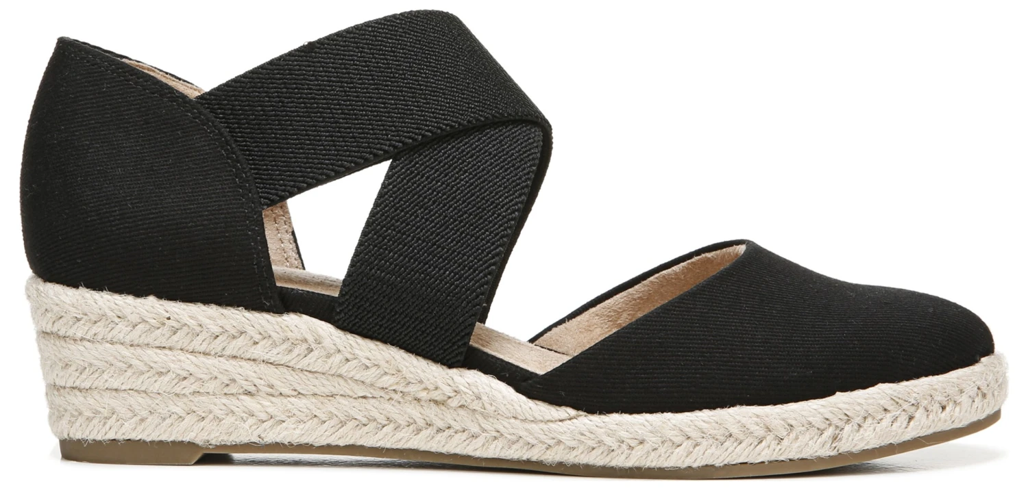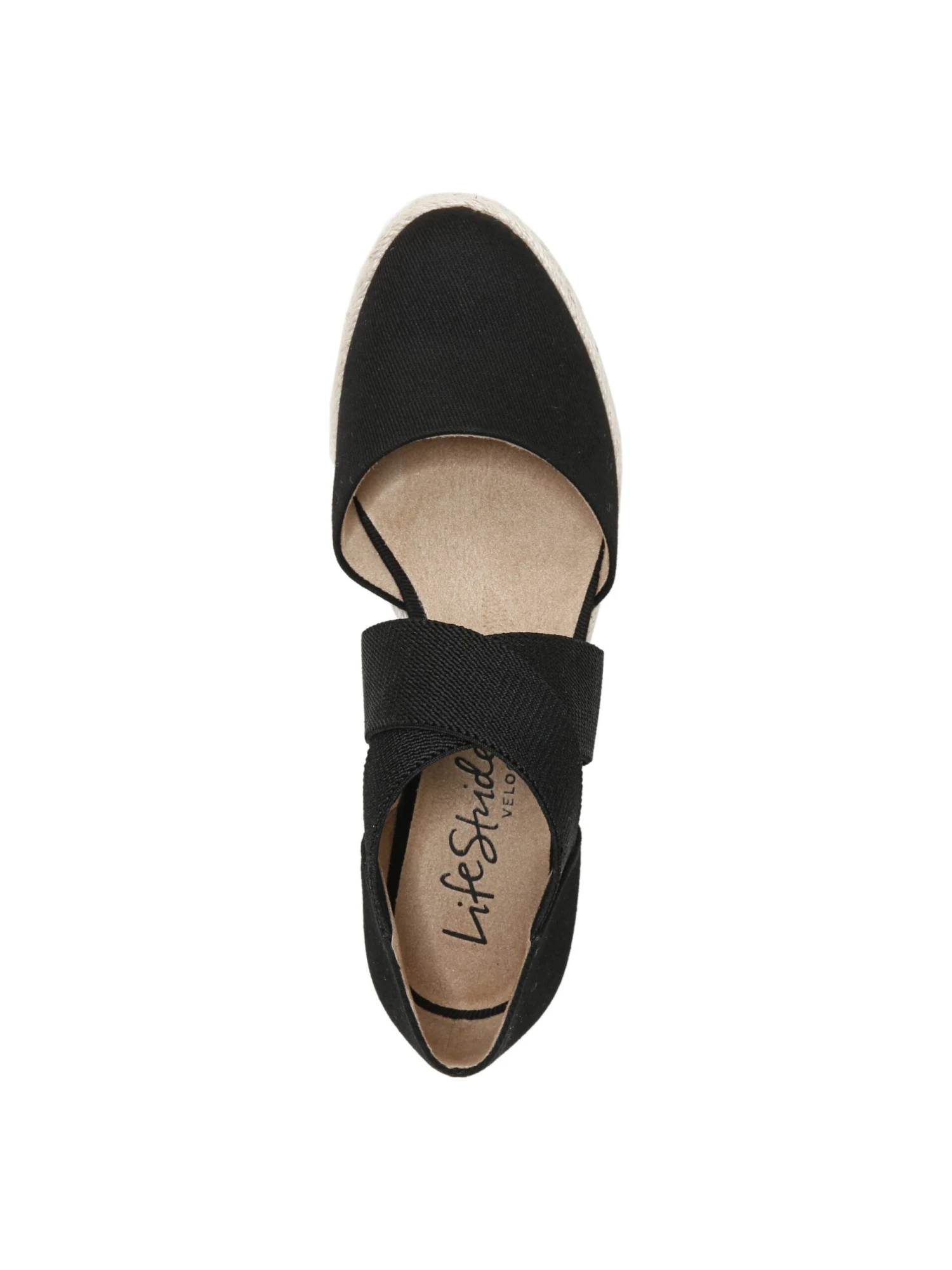 Slip into something fun and chic with the incredibly comfy Keaton espadrille wedge from LifeStride. Canvas upper with a round toe, crisscrossing stretch gore straps, and espadrille-inspired rope detailing.