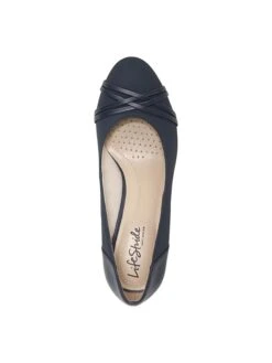 Timeless meets today with the easy-to-wear Pascal pump from LifeStride. Faux leather or fabric upper with round toe, interwoven strap detail, and patent heel cap.