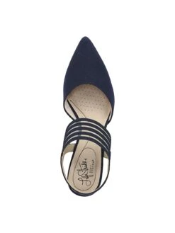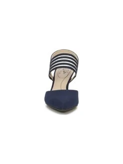 Modern and minimal, this standout pump adds a contemporary feel to any look. Microsuede or faux leather upper with a pointed toe, heel sling strap, and striped stretch gore strap.