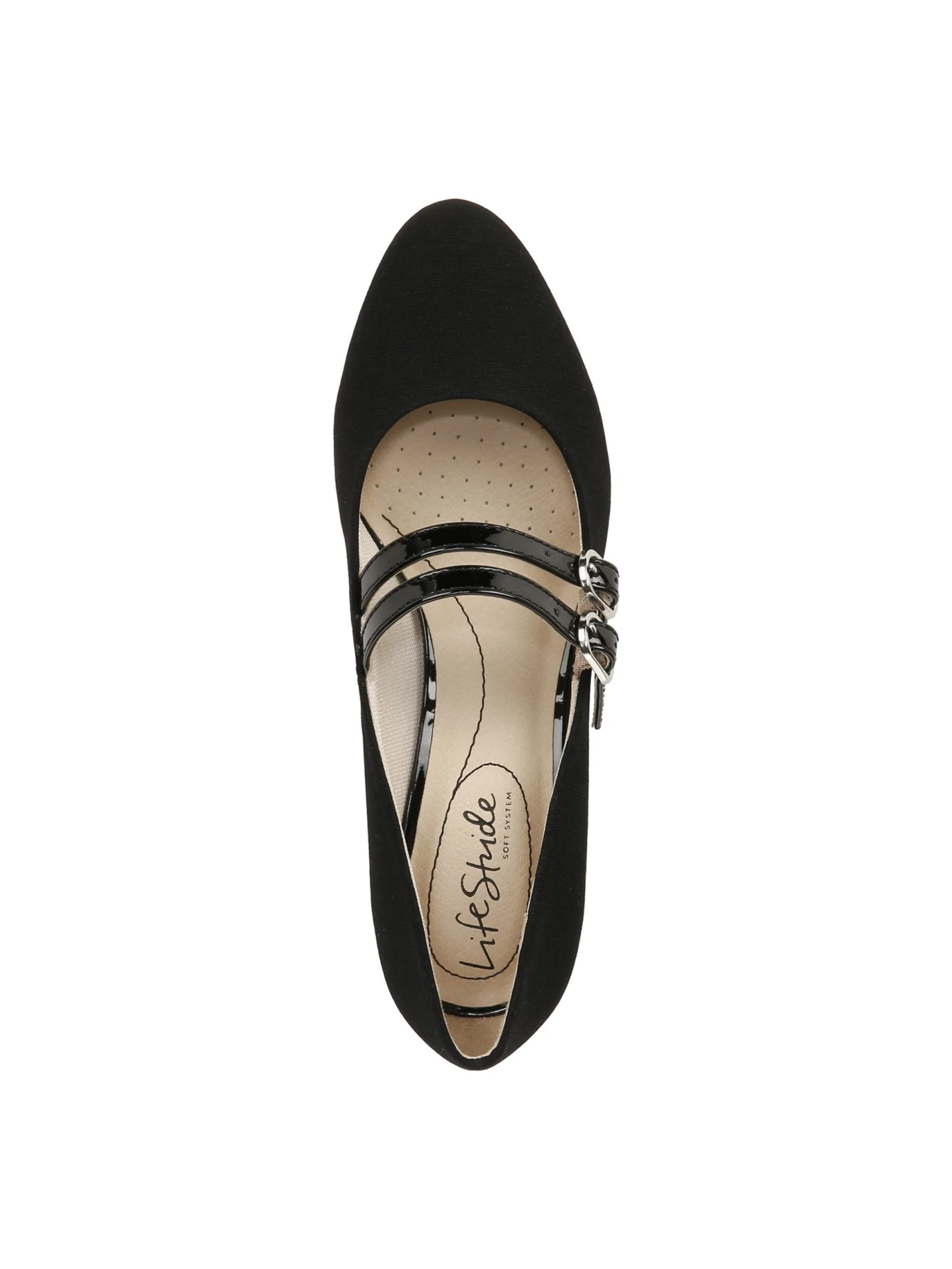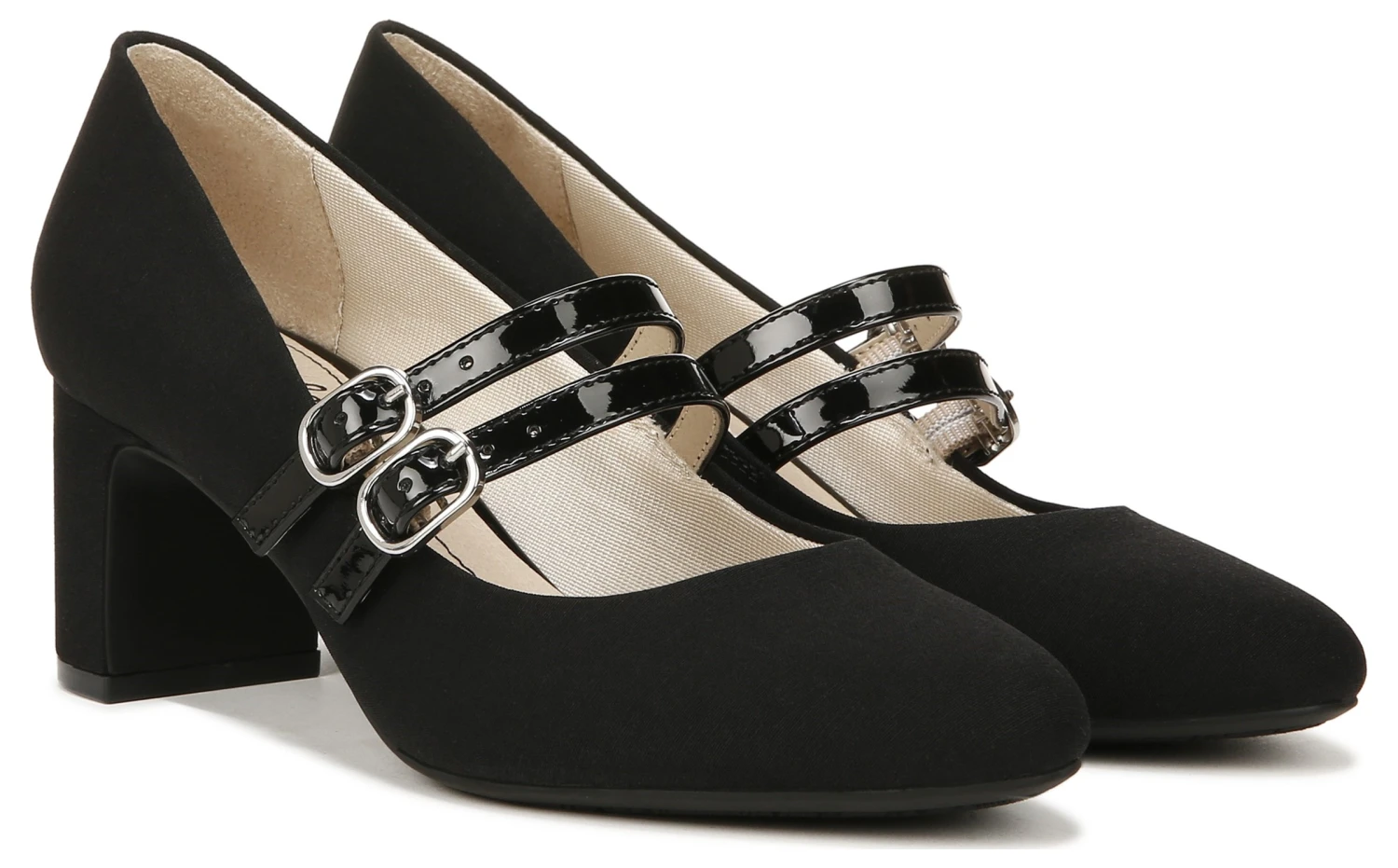 - Dual buckled mary jane strap closure