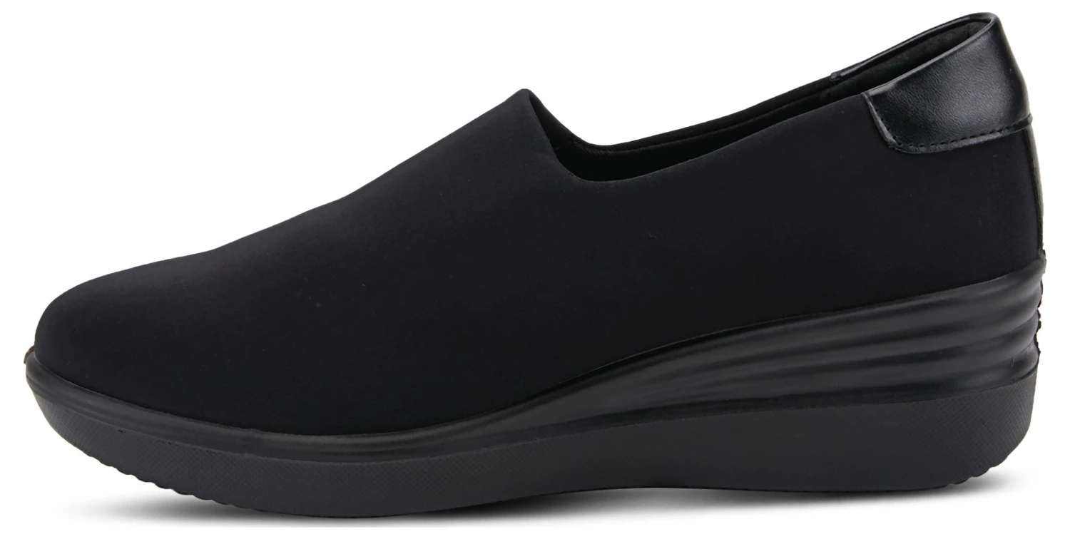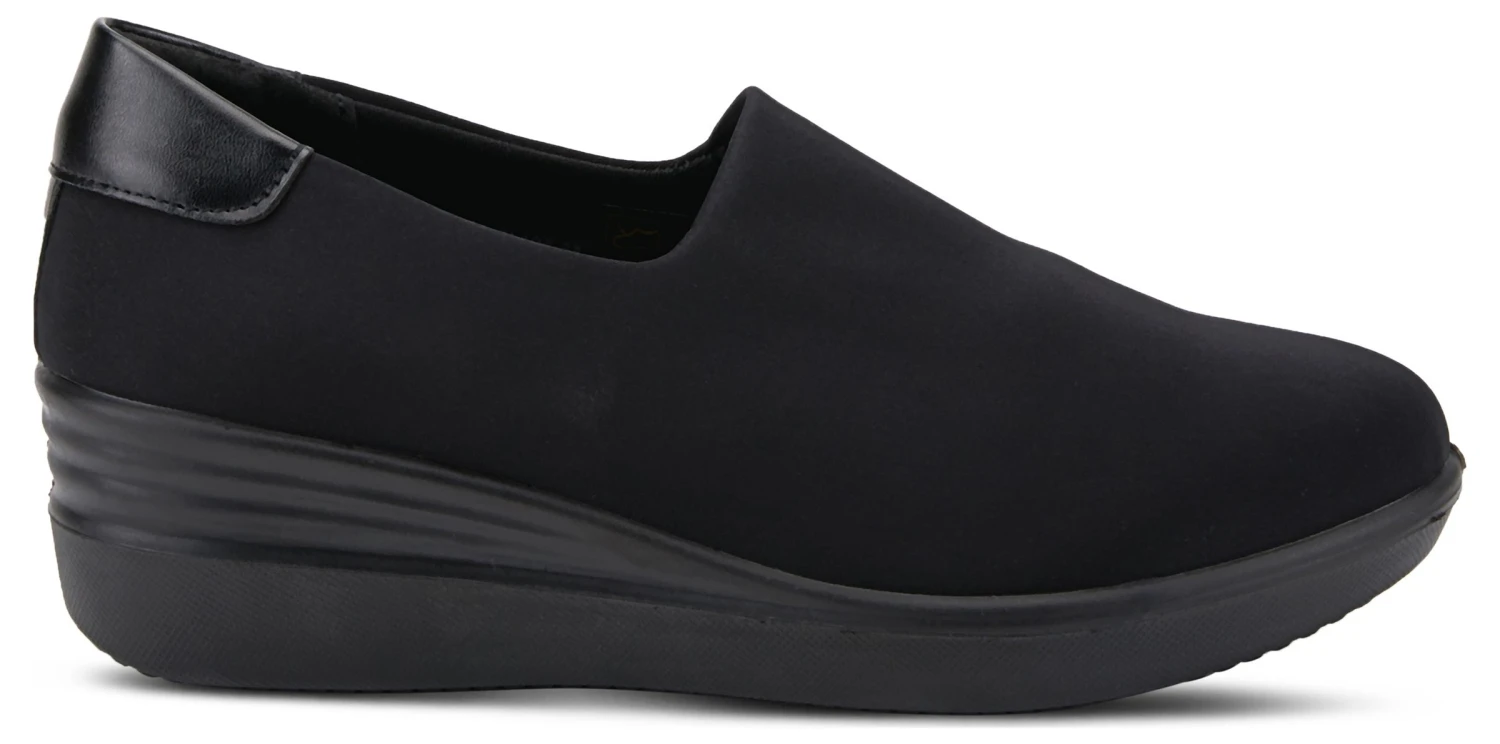 - Stretch fabric upper in a slip on wedge style with a round toe