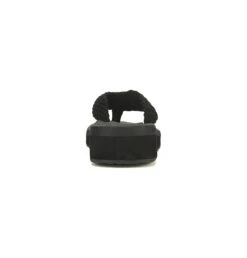 - Woven fabric upper in a platform flip-flop sandal style with an open toe