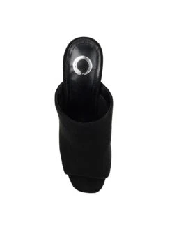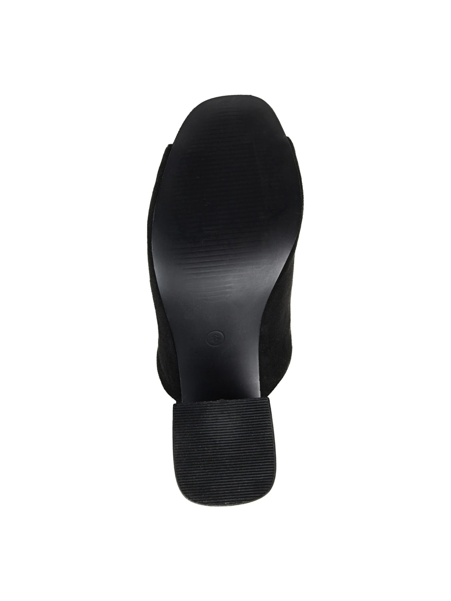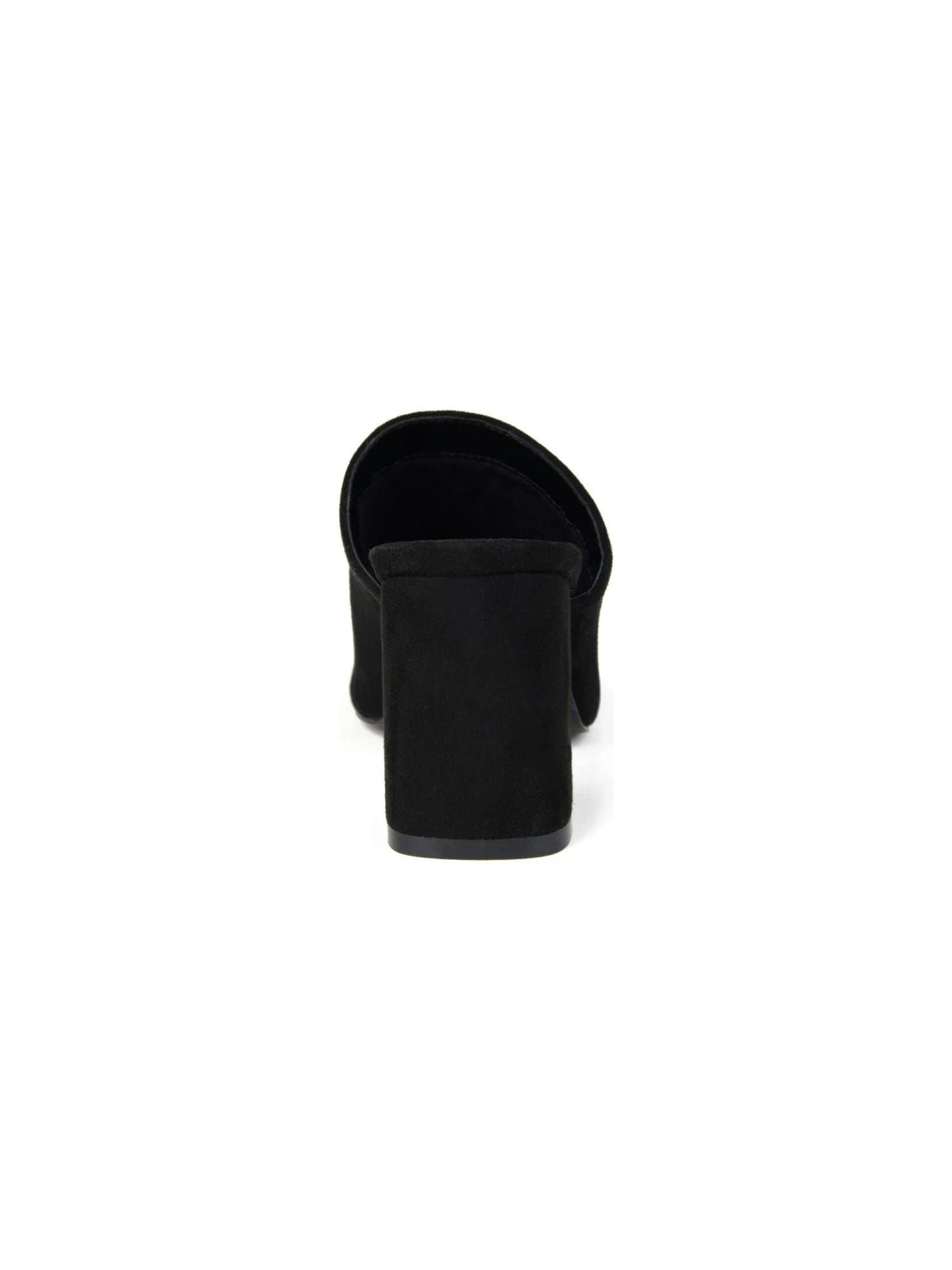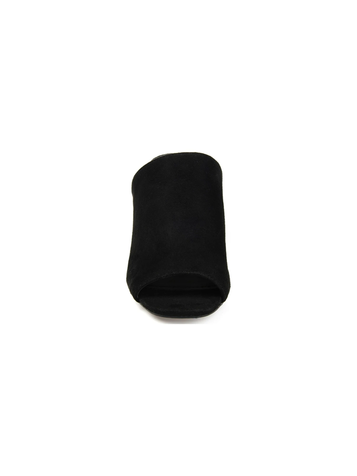 - Vegan suede upper in a block heel sandal style with a peep toe