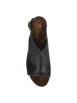 - Faux leather upper in a block heel sandal style with an open toe