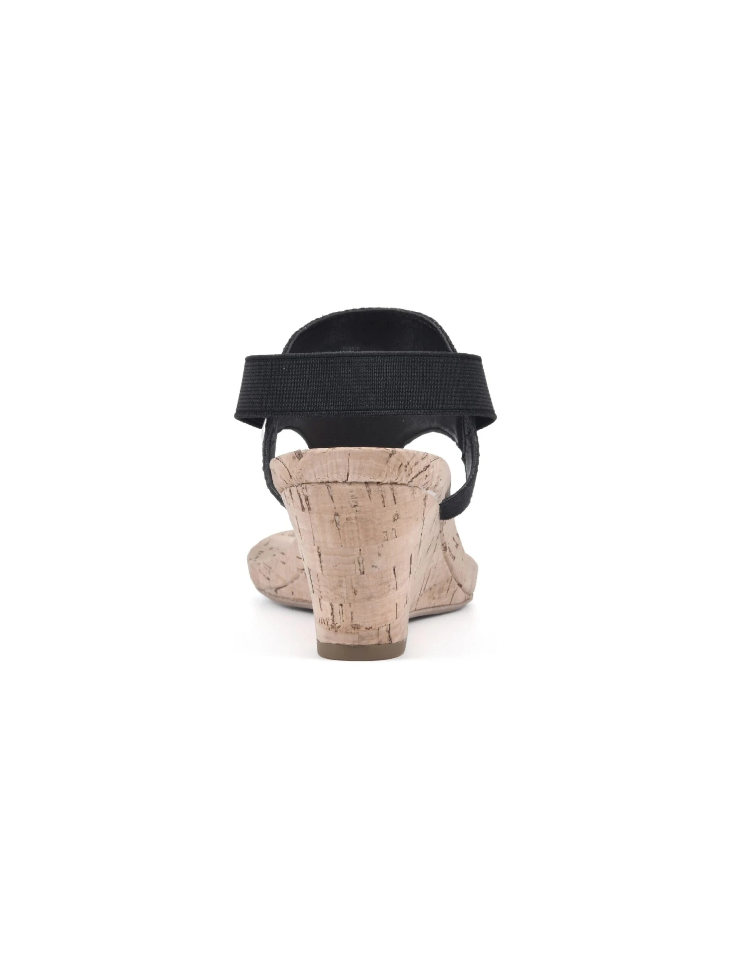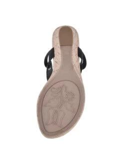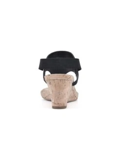 - Fabric or canvas upper in a dress wedge sandal style with an open toe