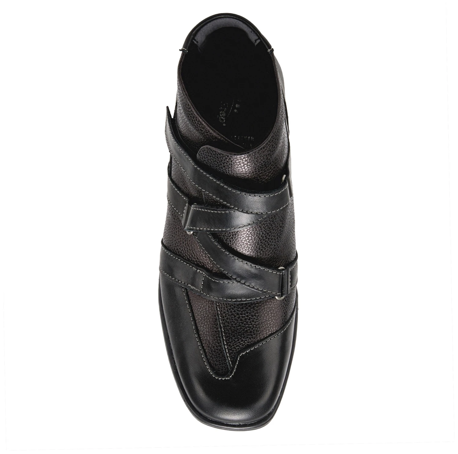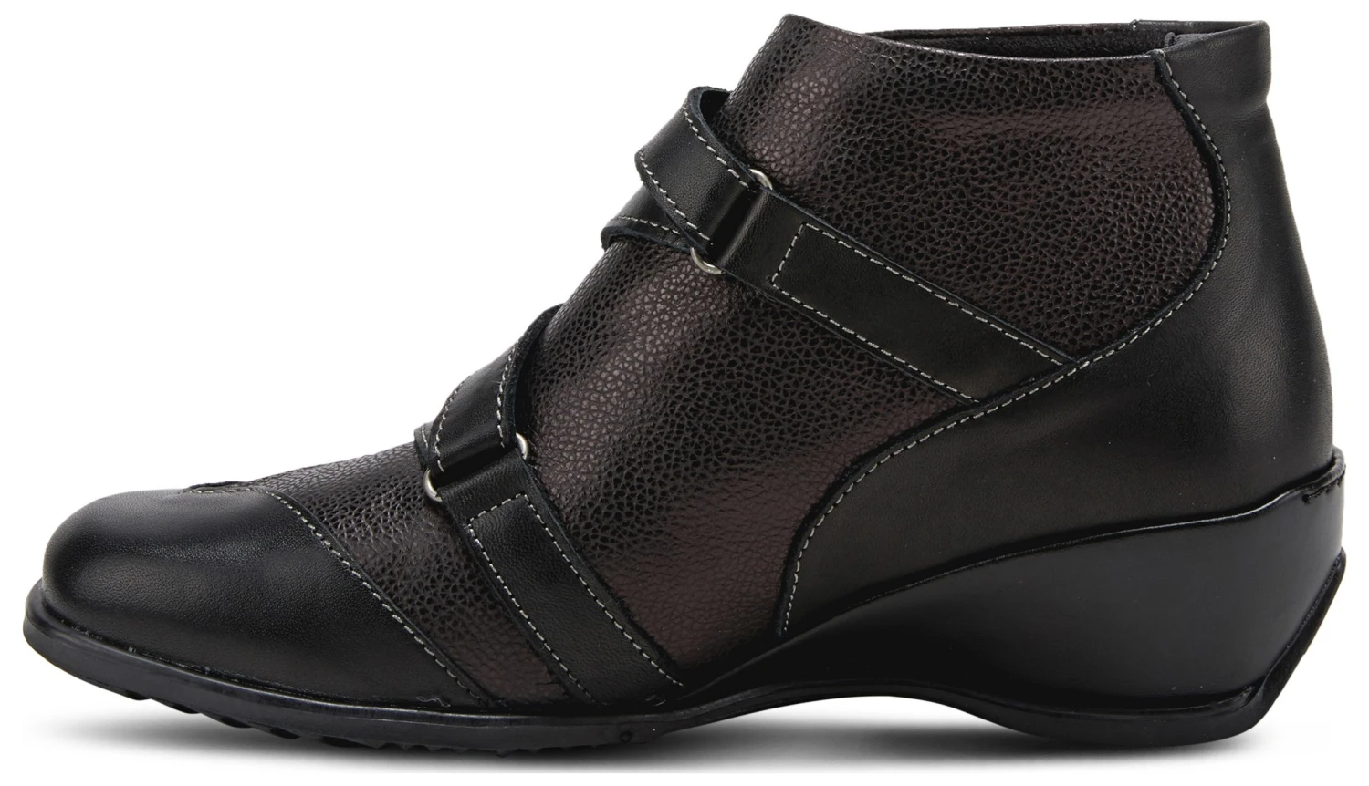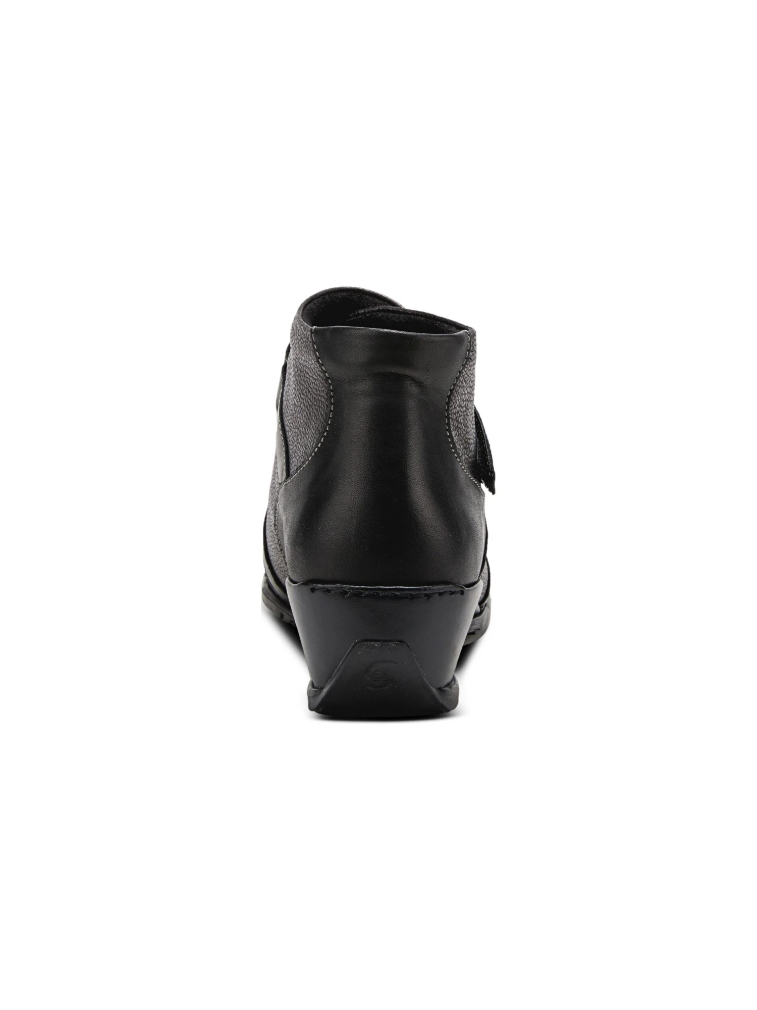 - Leather upper in a wedge ankle boot style with a soft square toe