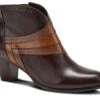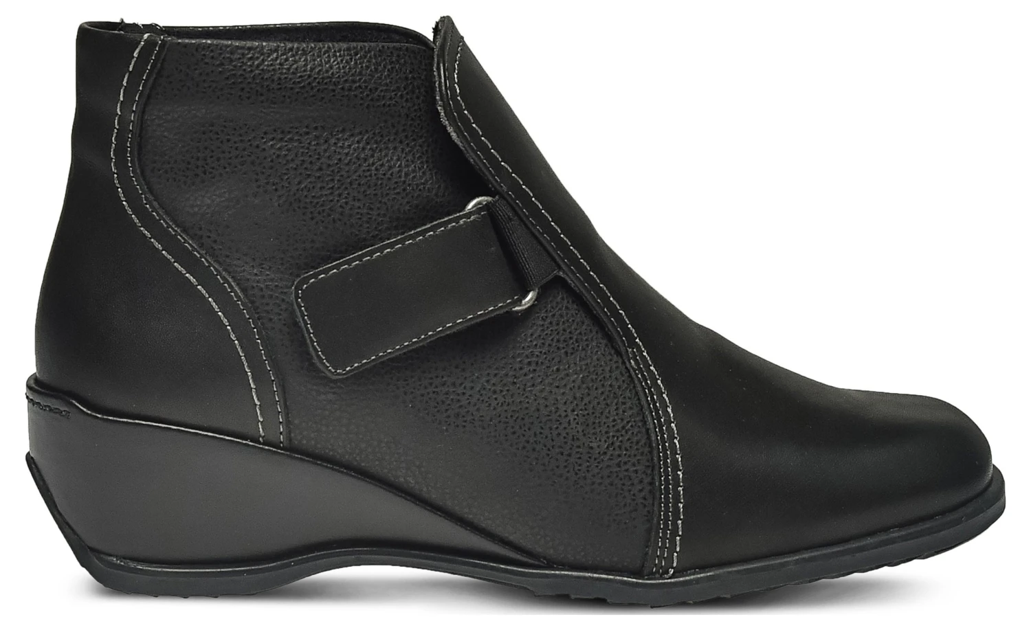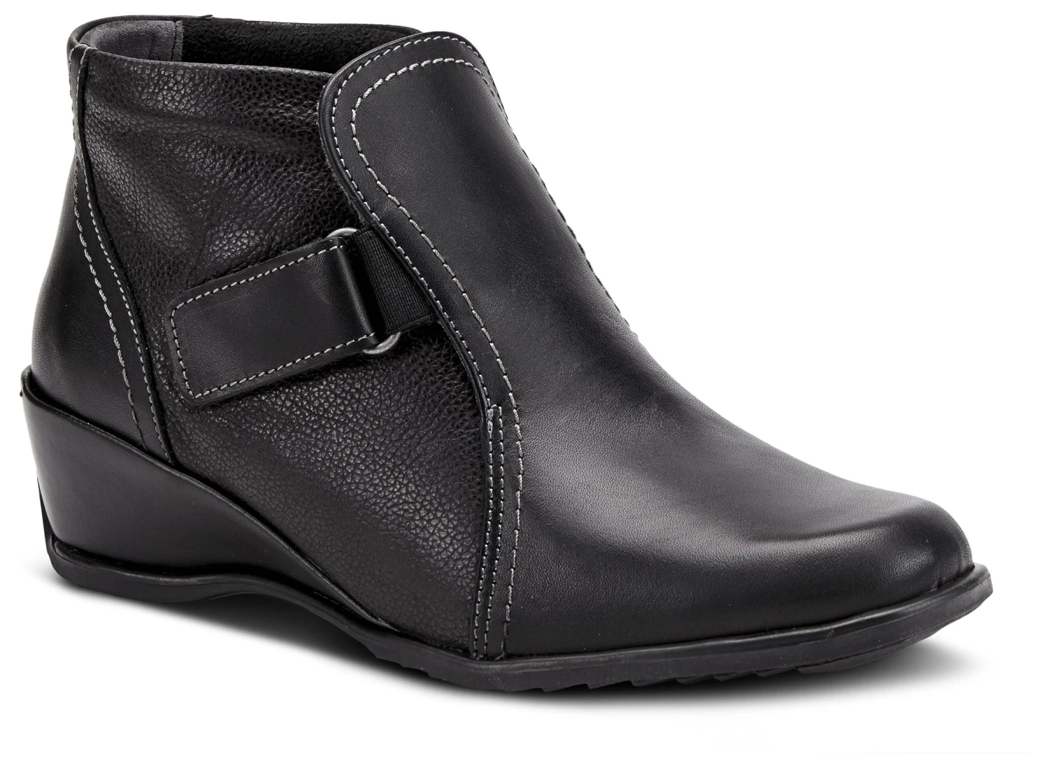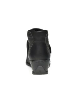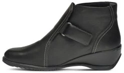 - Leather upper in a wedge bootie style with a soft square toe