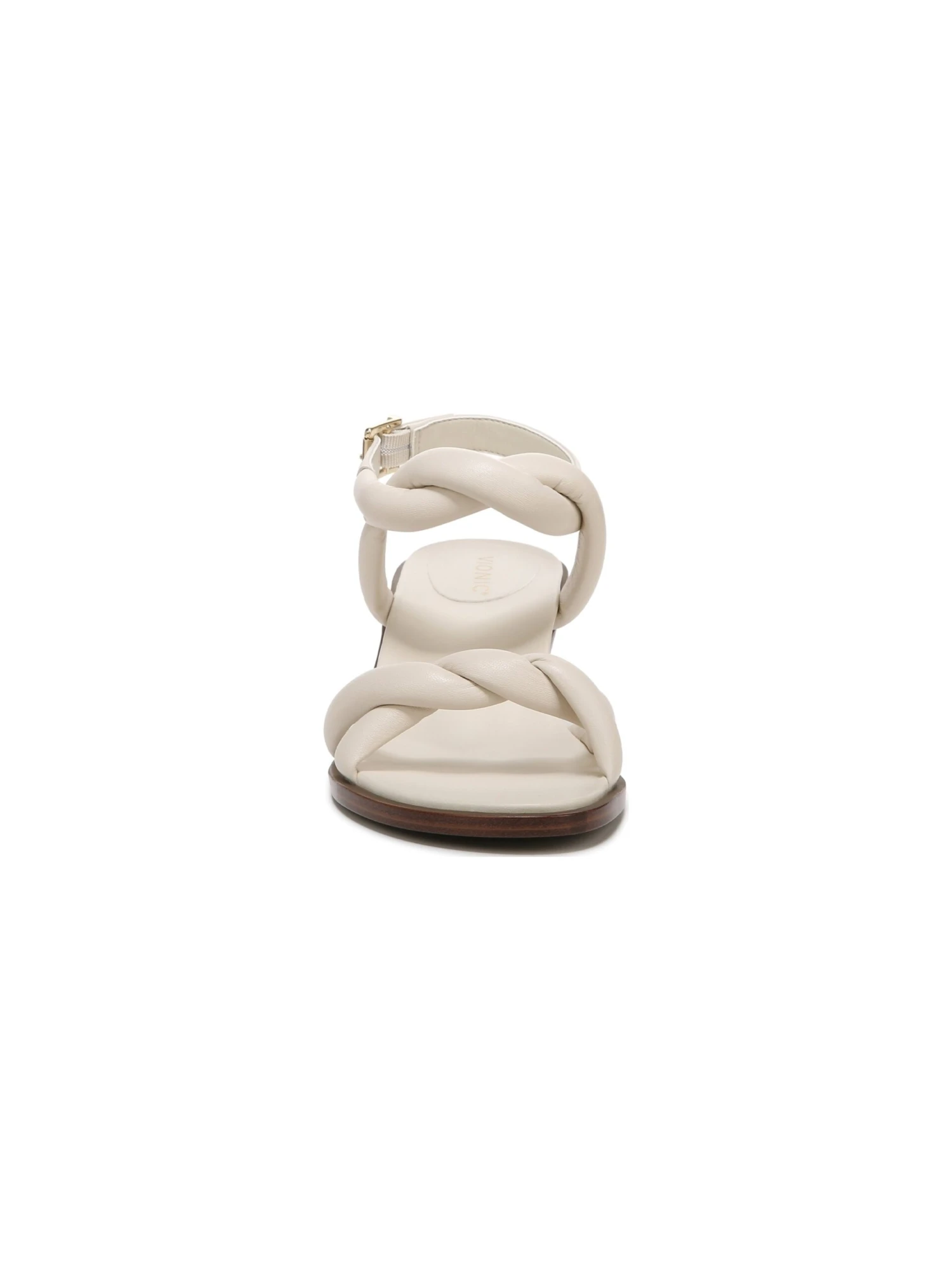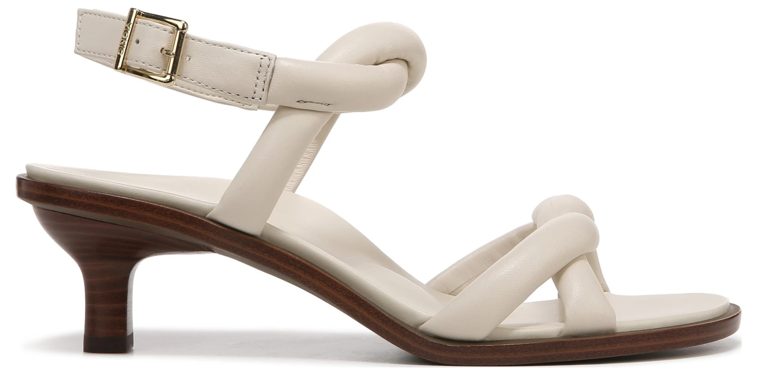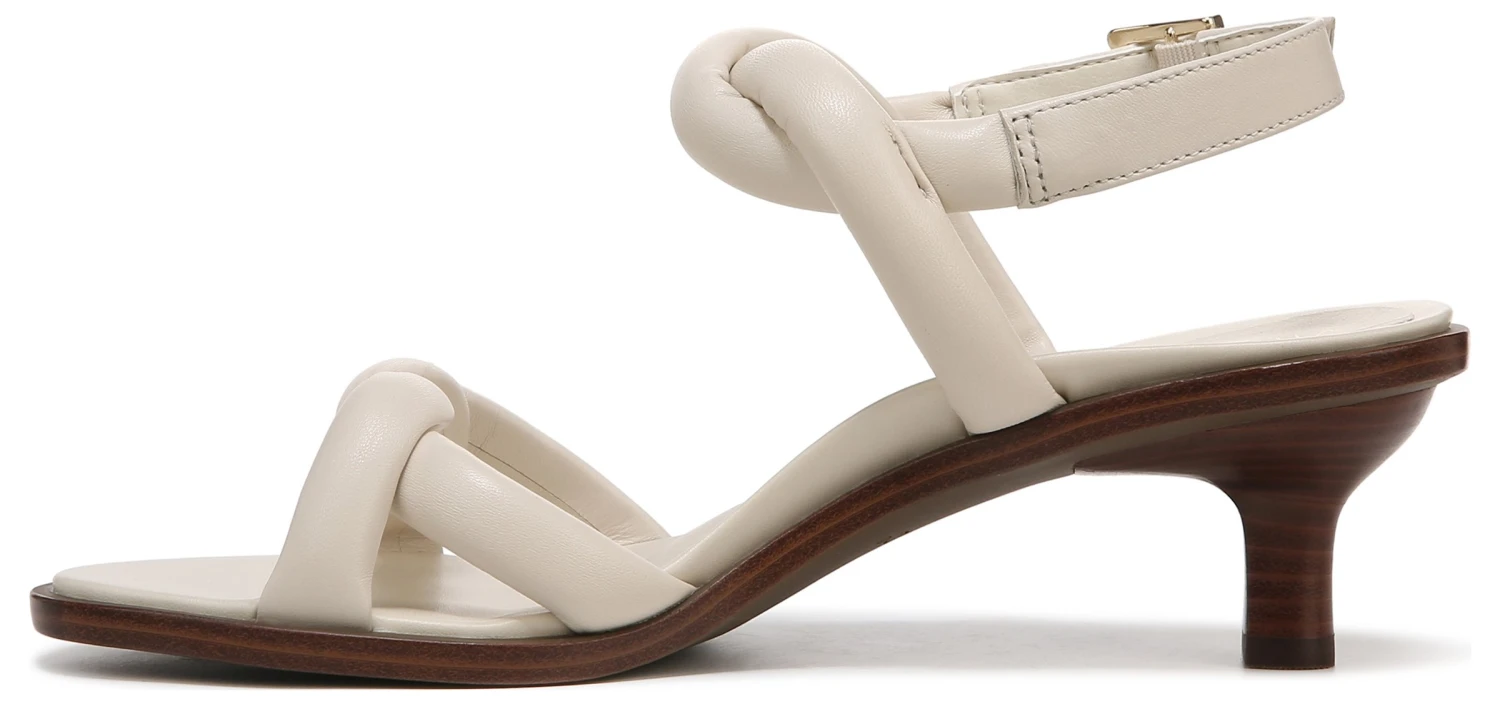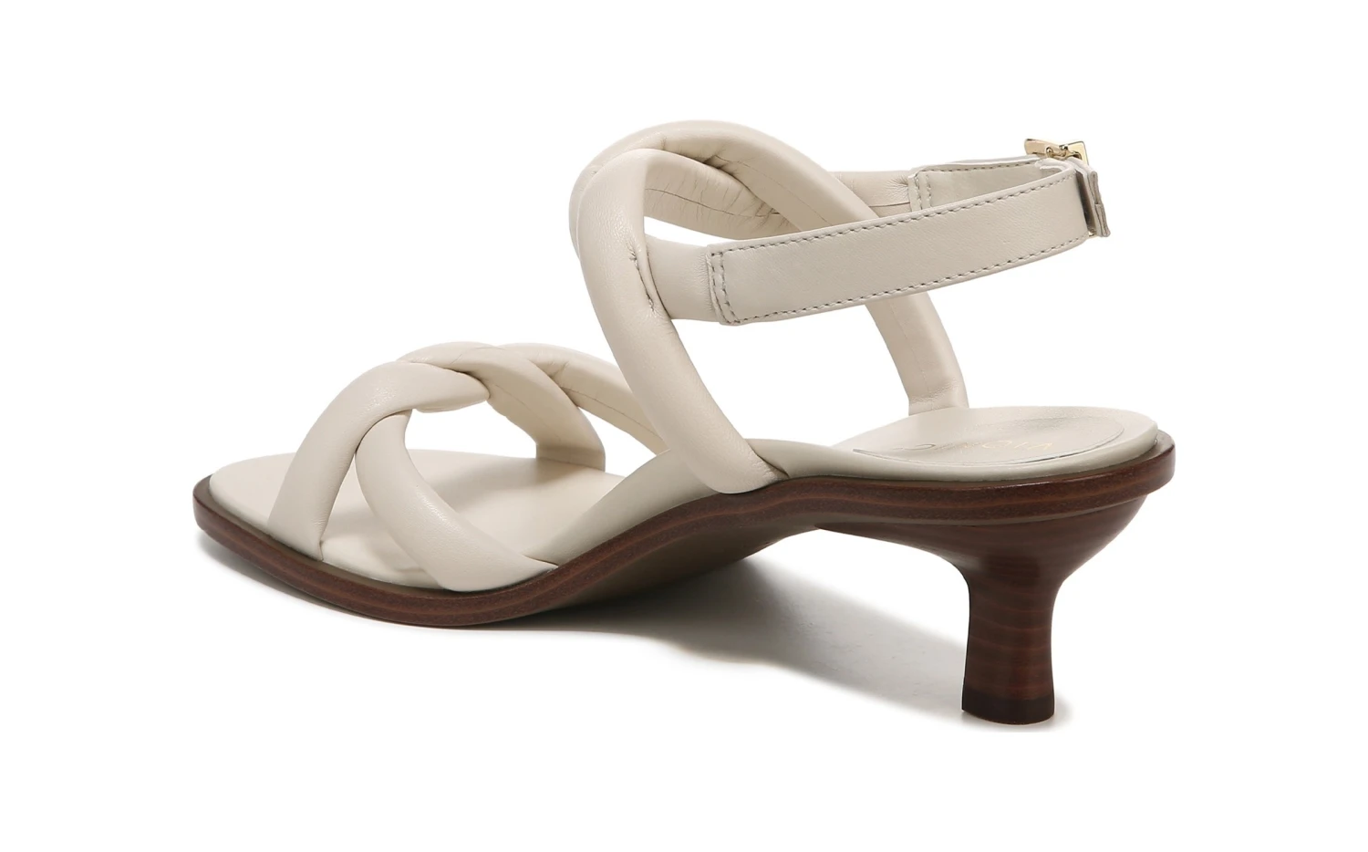 - Buckled ankle strap closure
