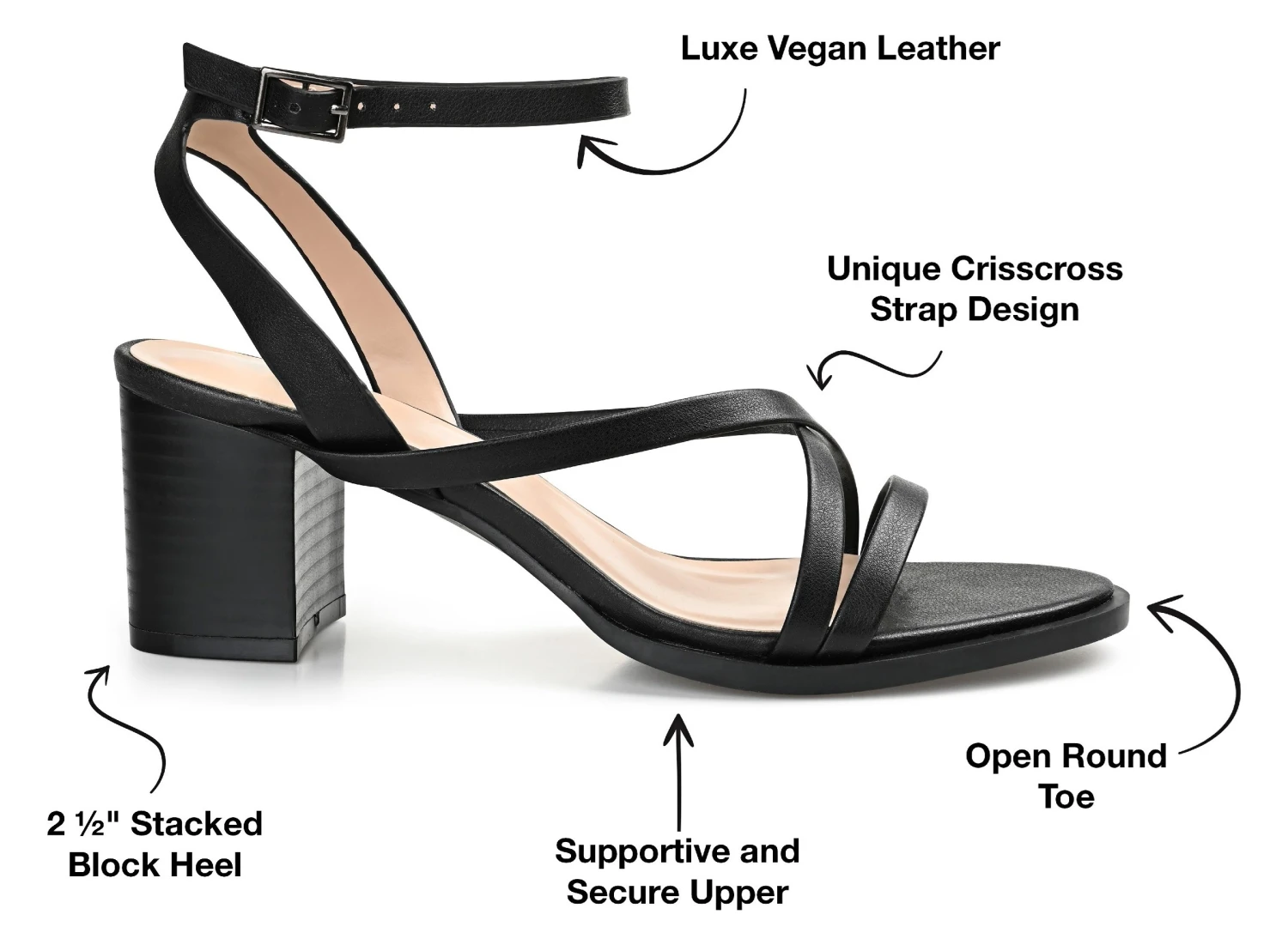 - Buckled ankle strap.