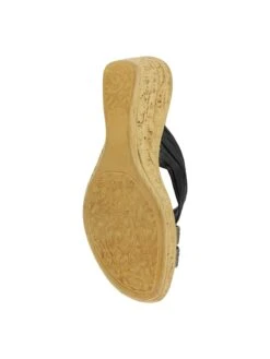 - Faux-leather upper in a wedge slide sandal style with an open toe