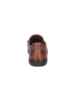 - Synthetic leather upper in a slip on style with round toe