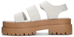 - Faux leather upper in a platform sandal style with a round toe