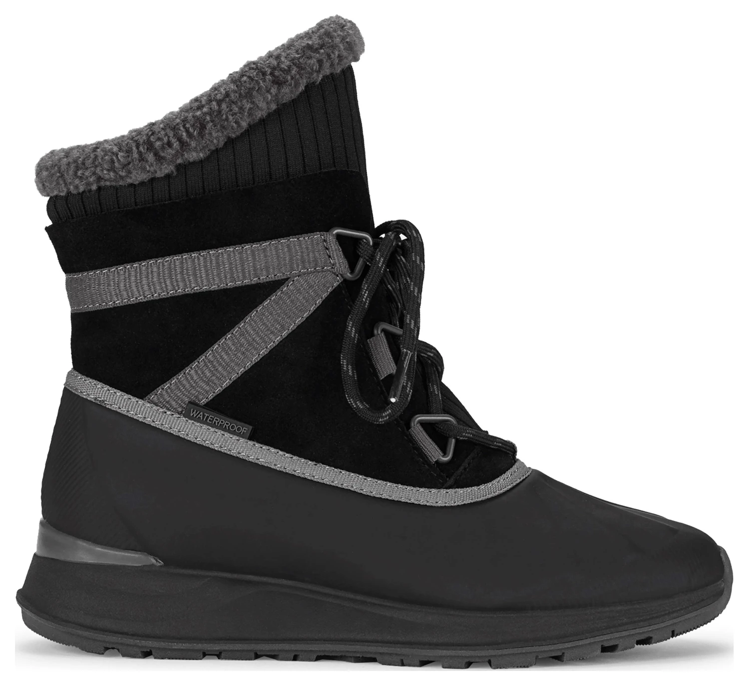- Suede upper in a snow and winter boot style with a round toe