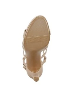 - Manmade, metallic manmade or fabric upper in an elegant dress heel with an open toe
