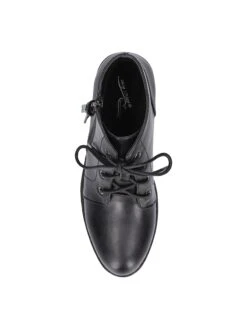 - Vegan leather upper in a bootie style with a round toe