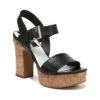 - Leather upper in a block heel sandal style with a square shaped open toe