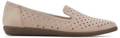 - Fabric or faux leather upper in a wedge slip on with an almond toe