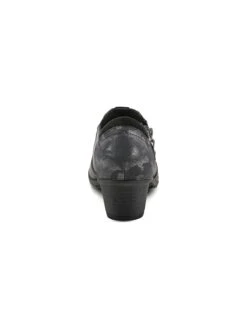 - Waterproof fabric upper in a block-heel ankle boot style with a round toe