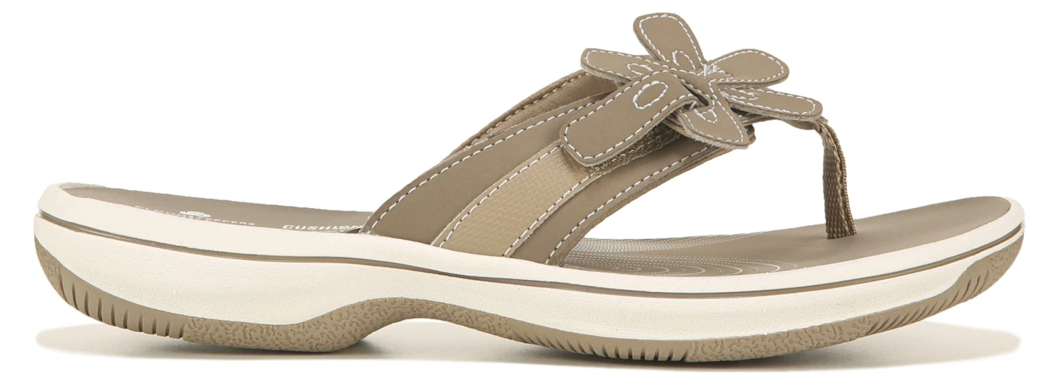 Get ready for warmer weather with the Women’s Clarks Brinkley Flora Cloudsteppers Flip Flop Sandal.