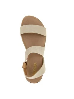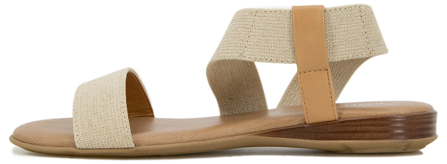 - Stretch upper in a flat sandal style with an open toe.