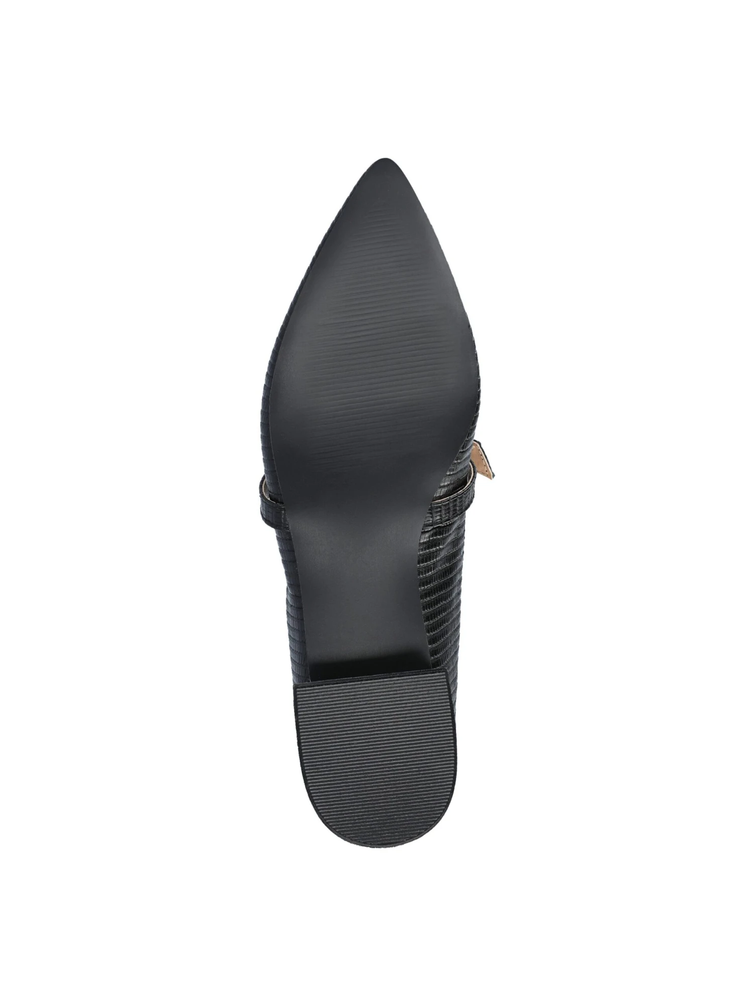 - Durable man-made outsole with a 1″ block heel