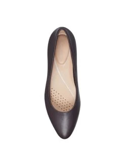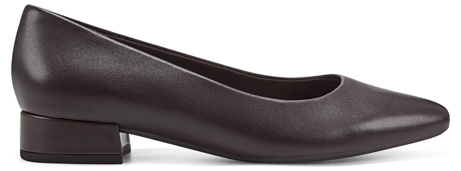 - Leather upper in a dress pump style with a round toe