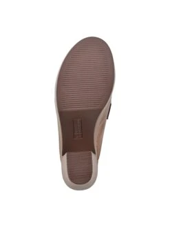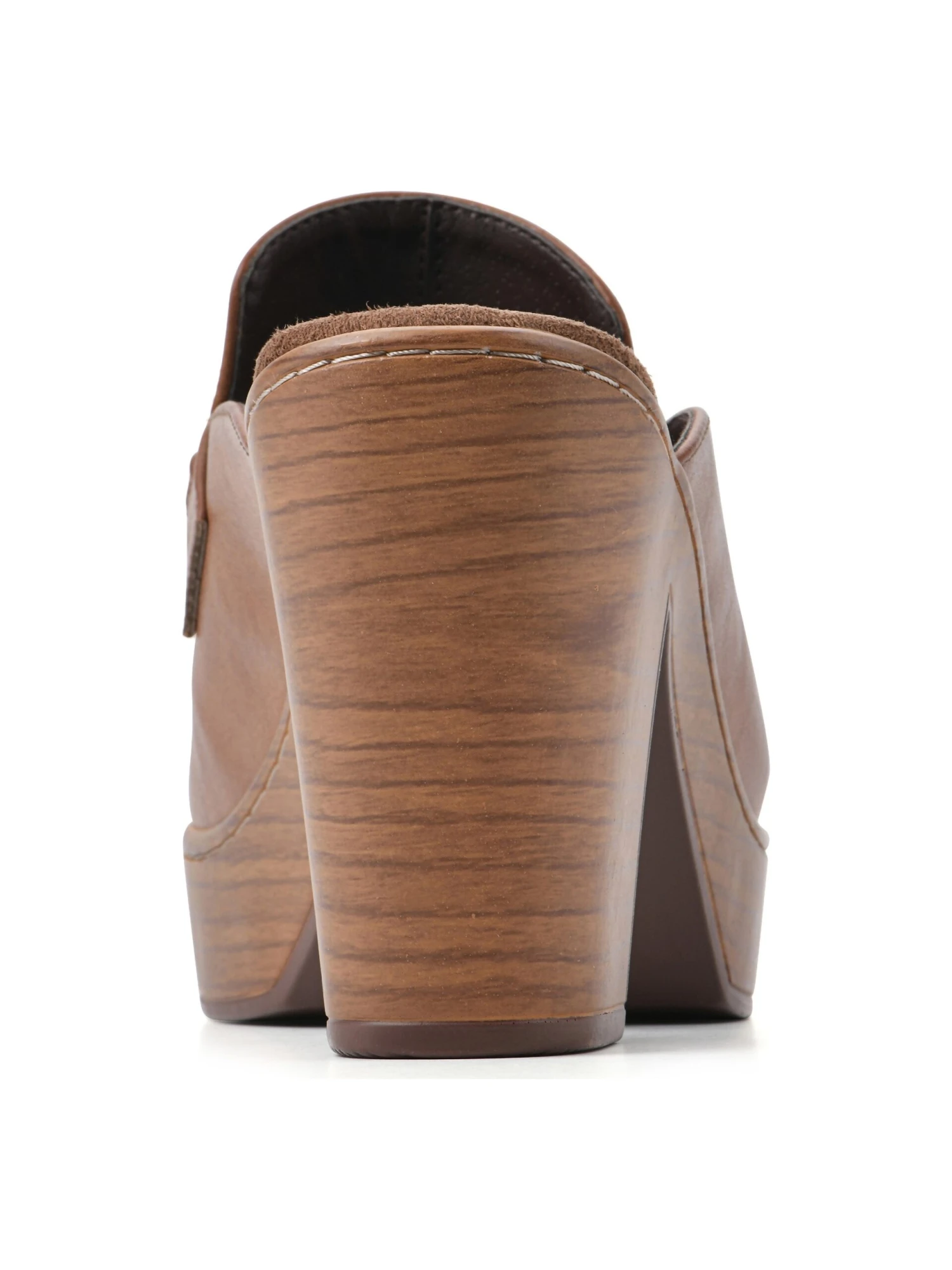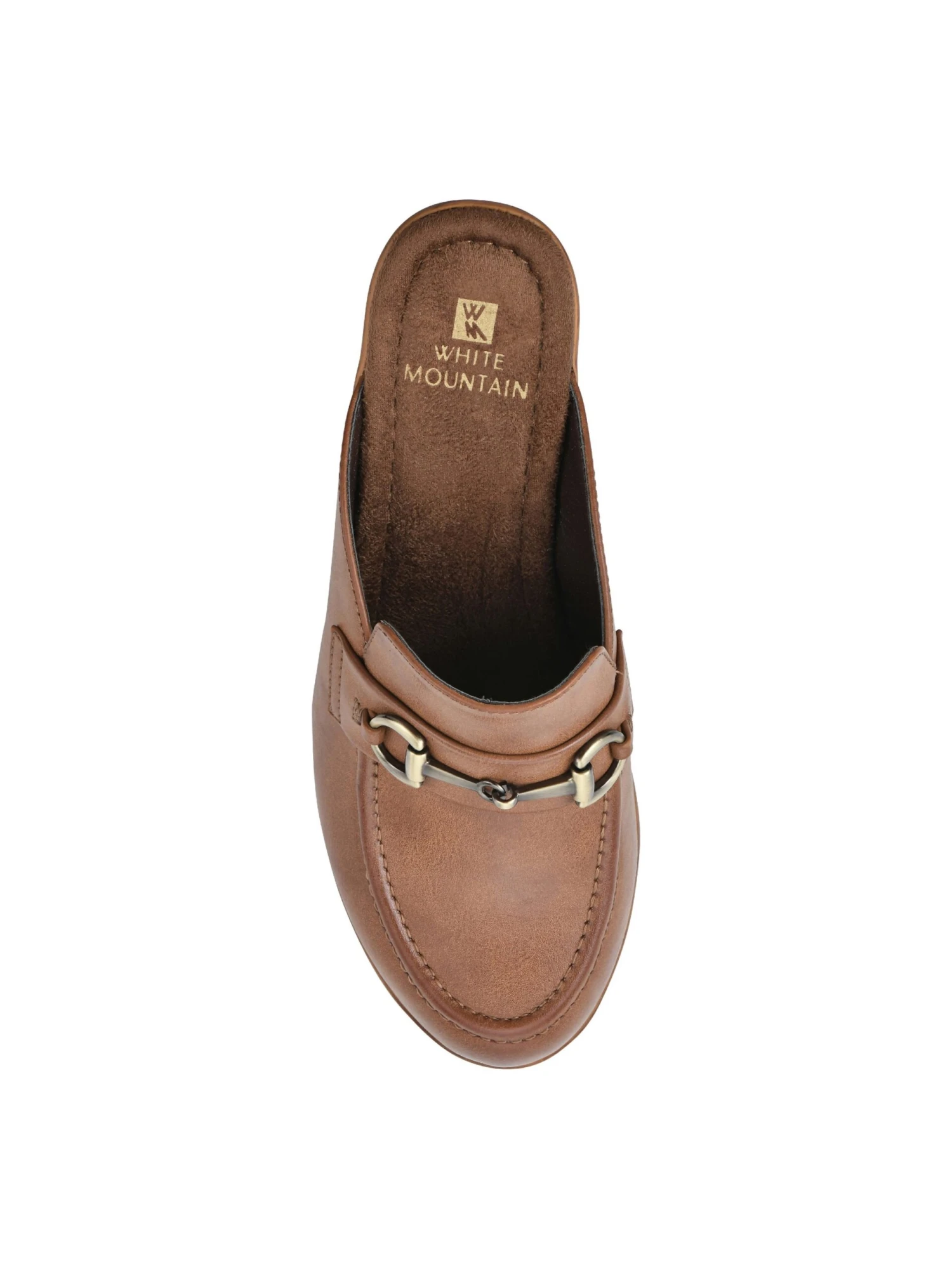- Faux leather upper in a mule style with a round toe