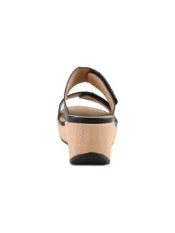 - Synthetic leather upper in a wedge sandal style with an open toe.