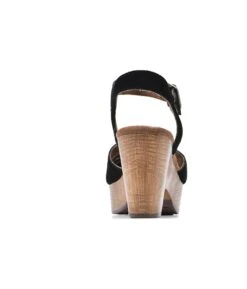 - Synthetic upper in a heeled clog style with a round toe