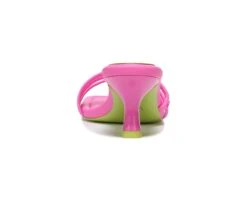 - Vegan leather upper in a kitten heel/dress sandal style with an open toe