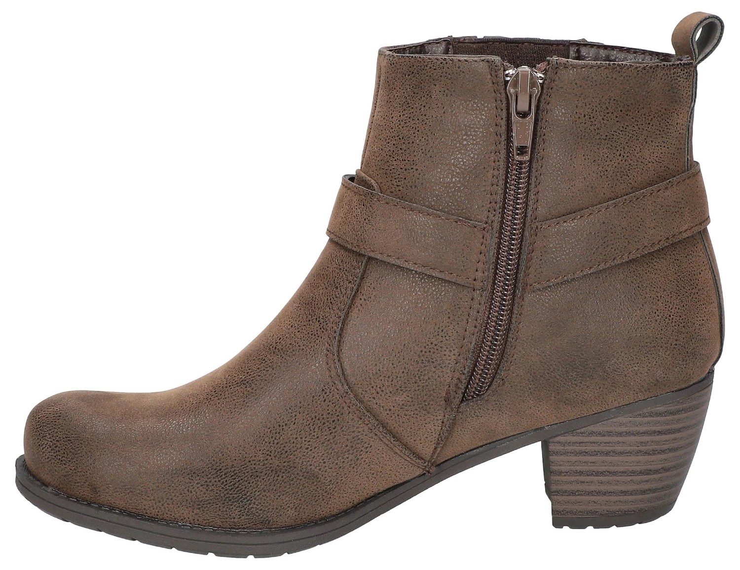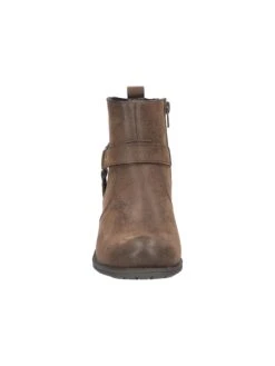 - Synthetic leather upper in a bootie style with round toe