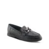 - Fabric or faux leather upper in a slip on shoe style with a round toe