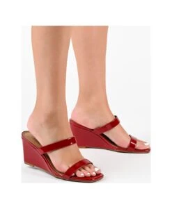 - Vegan leather upper in a wedge sandal style with an open square toe