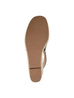 - Faux leather upper in a wedge sandal style with a open toe.