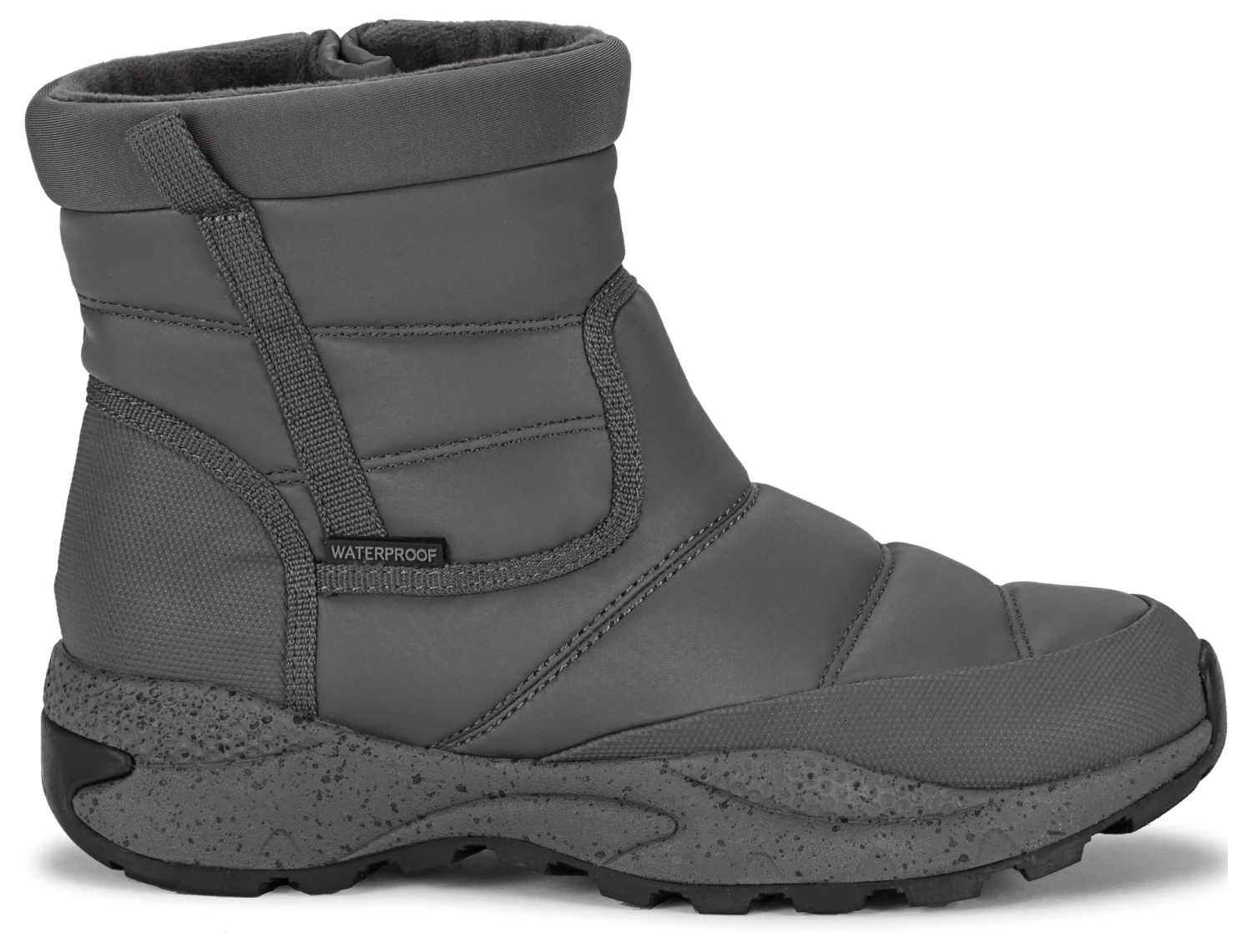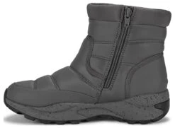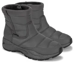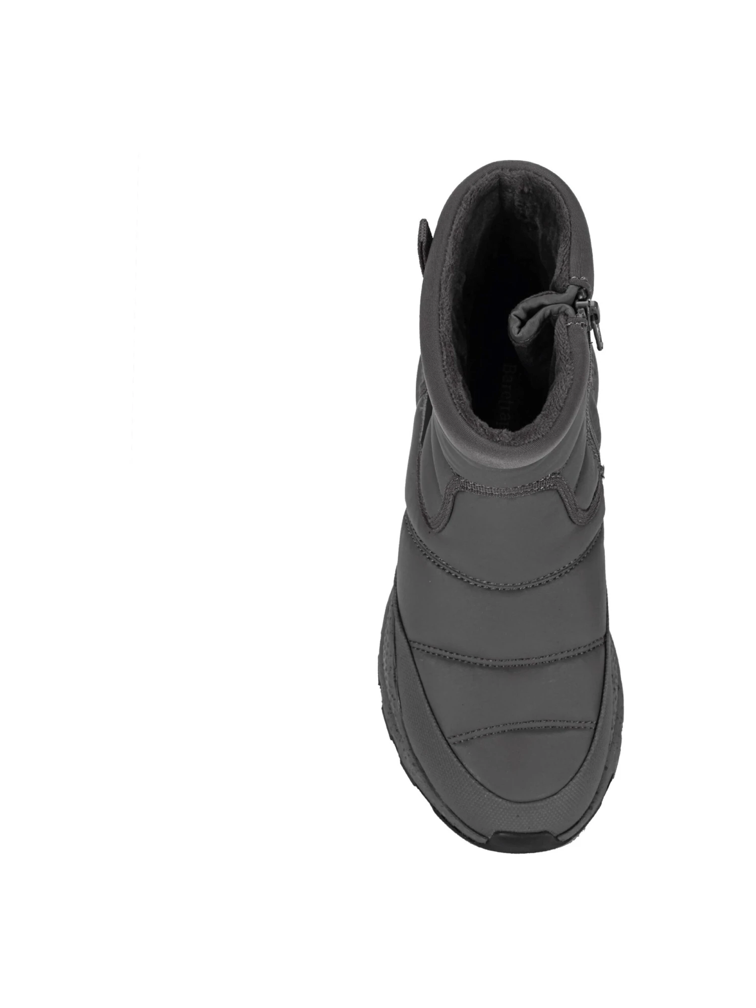 - Faux-leather upper in a snow and winter boot style with a round toe
