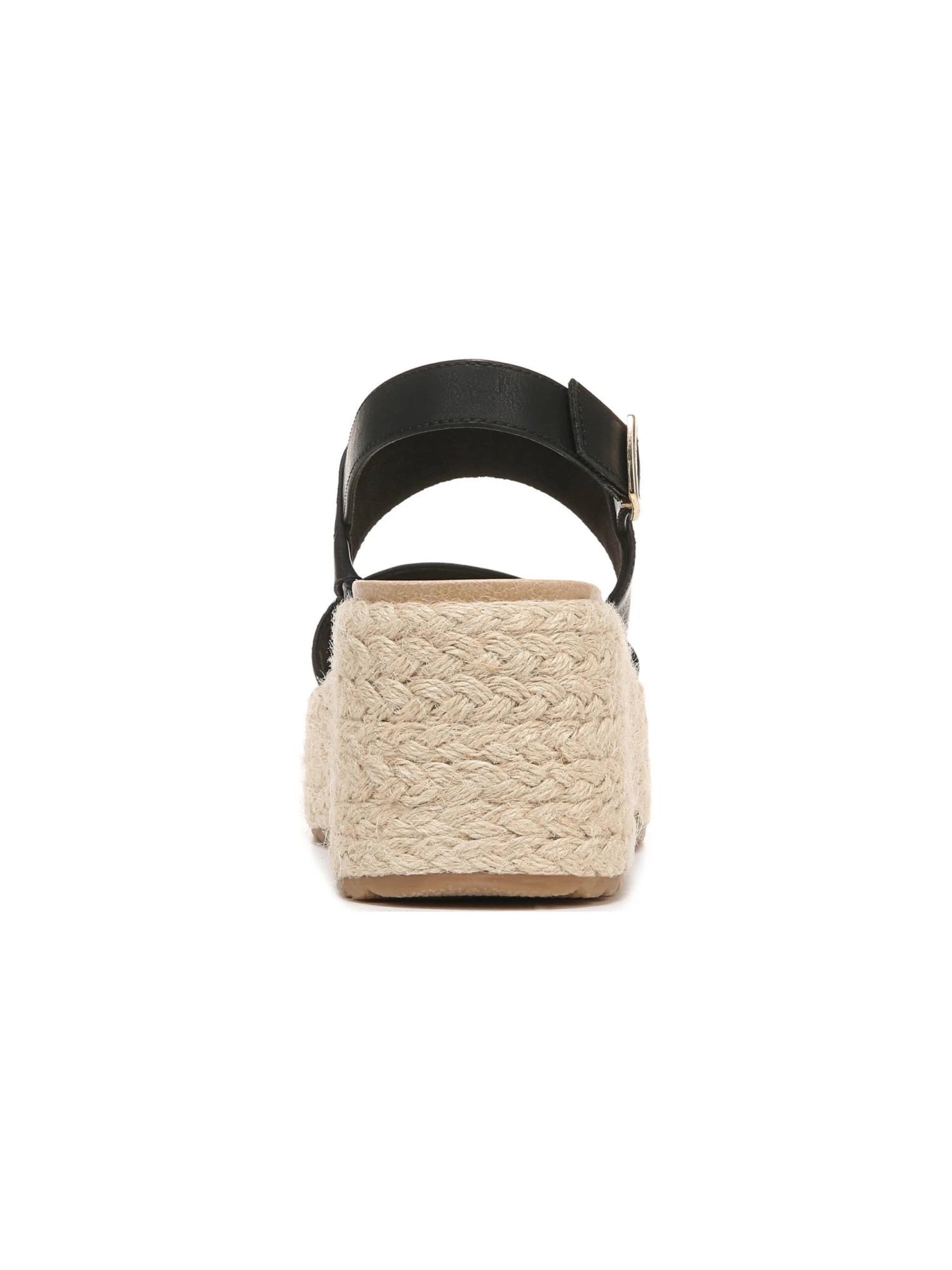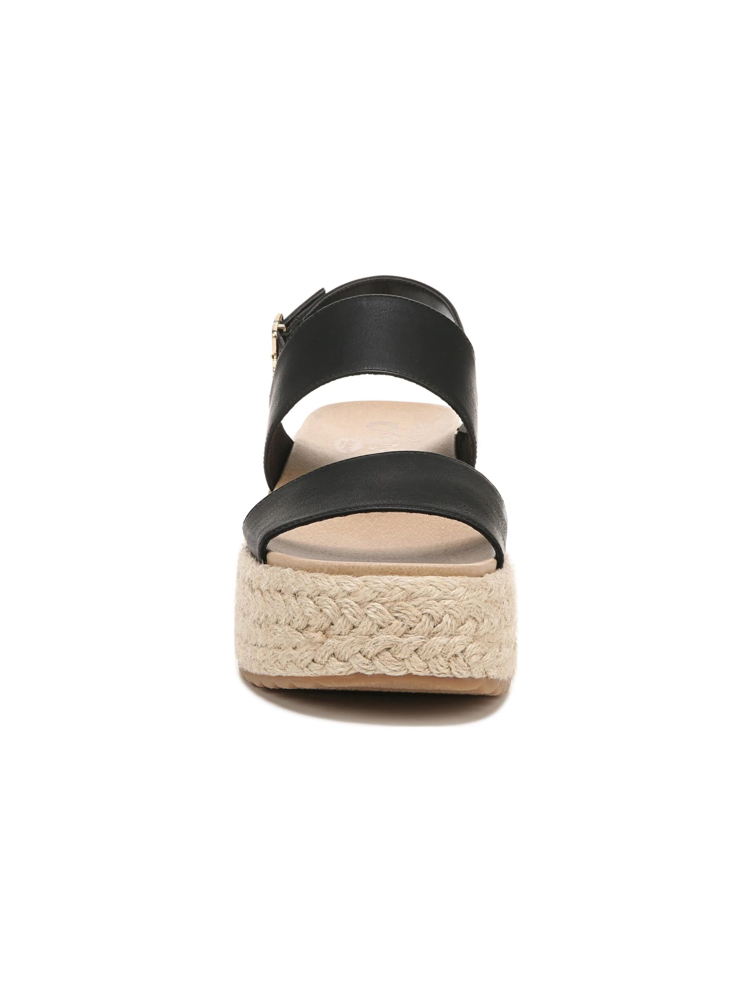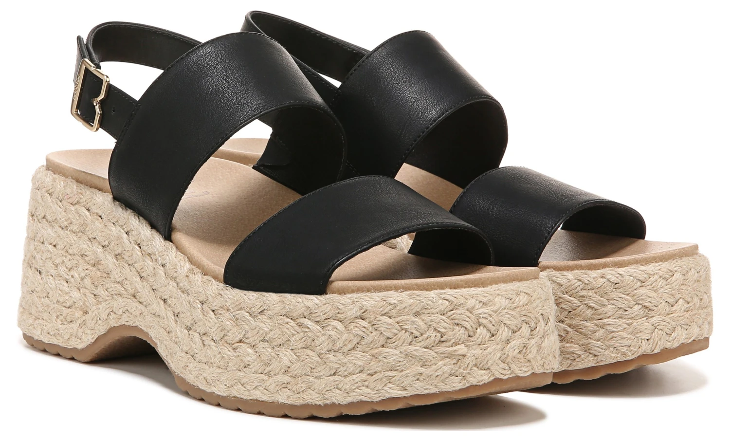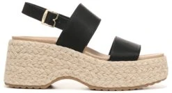 - STYLE: Womens sandals with a double band, iconic buckle, and open toe with a 2 3/4 inch espadrille platform wedge heel