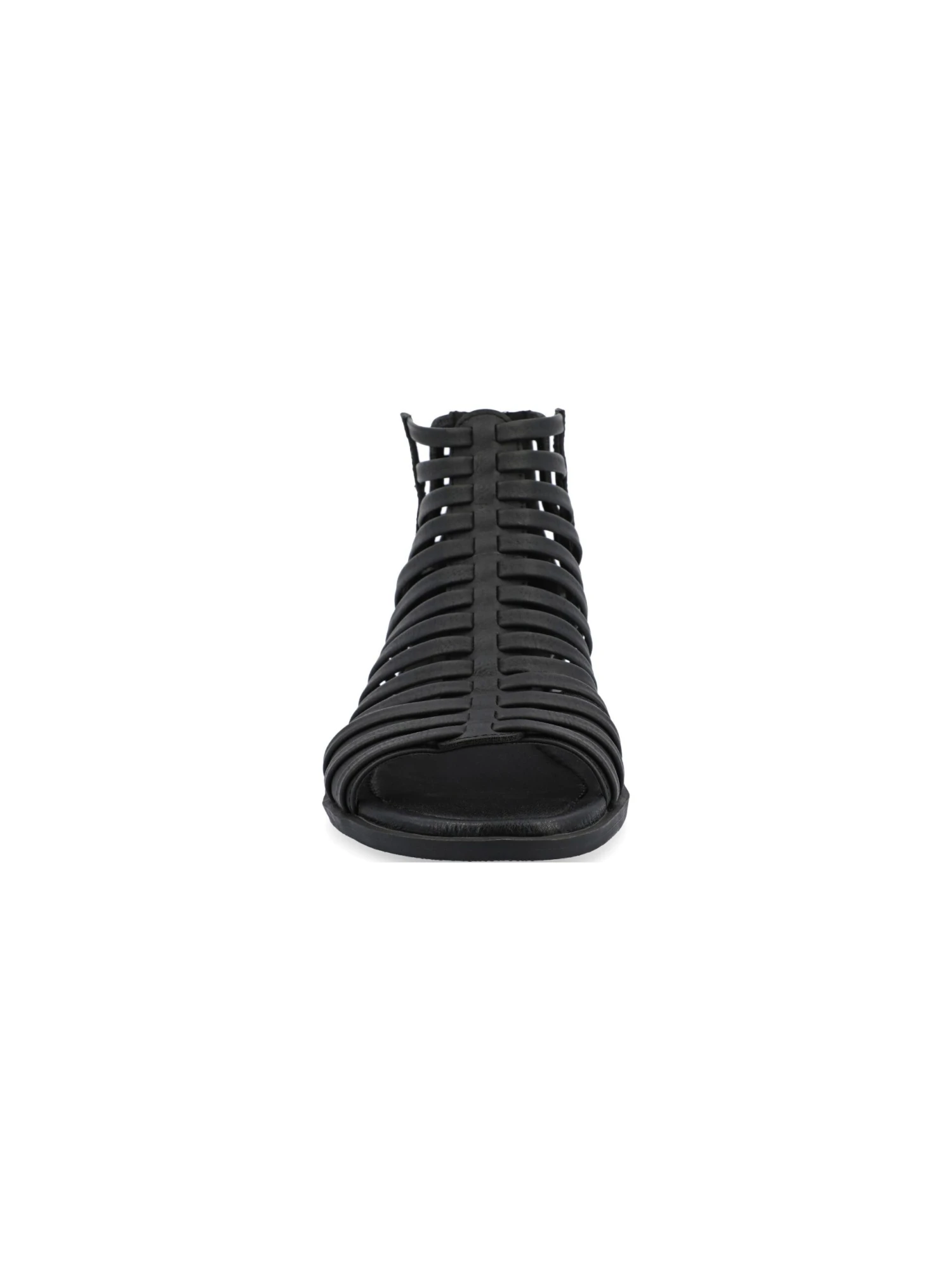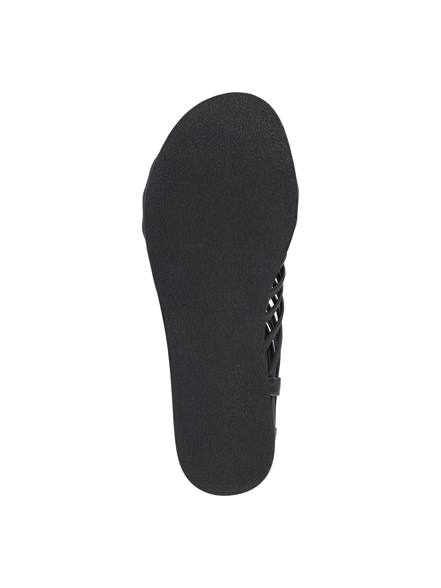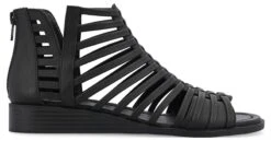 - Faux leather upper in a gladiator sandal style with an open toe.