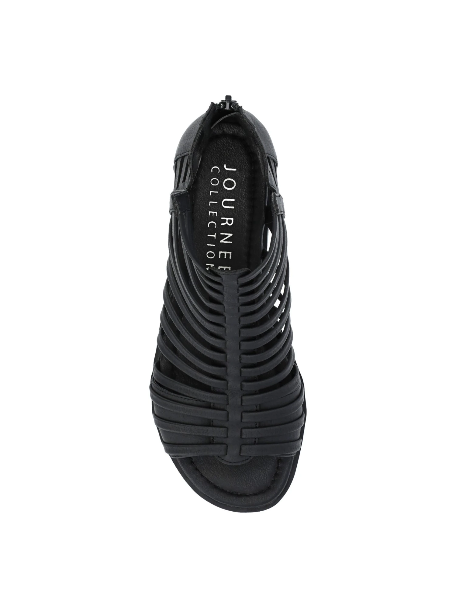 Step into a fun and quirky style with the Women’s Journee Collection Delilah Wide Gladiator Sandal