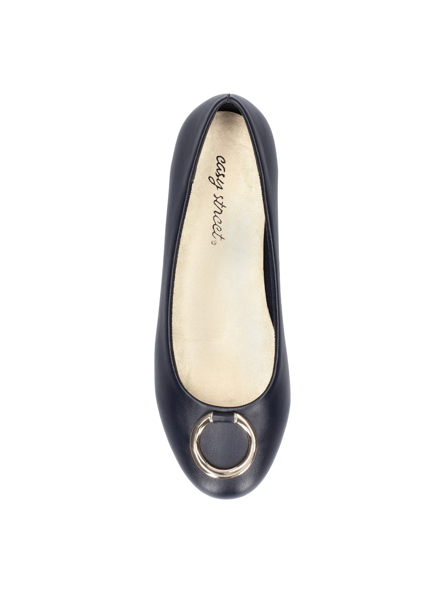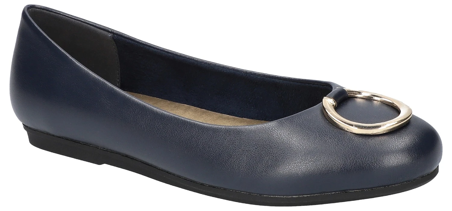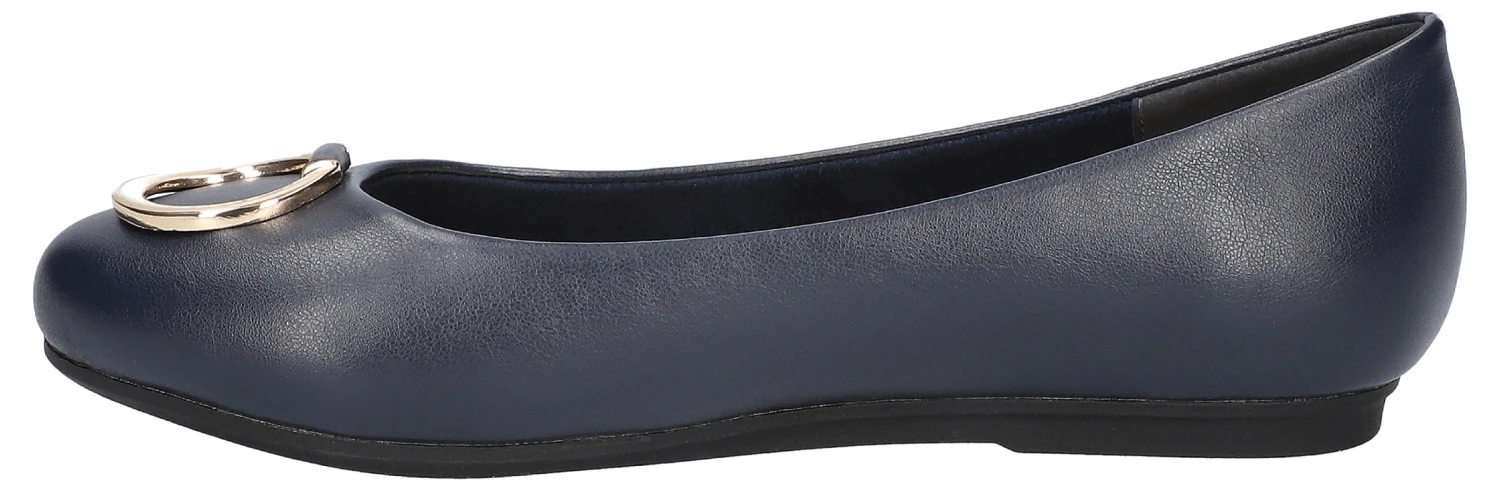 - Synthetic leather upper in a ballet flat style with round toe