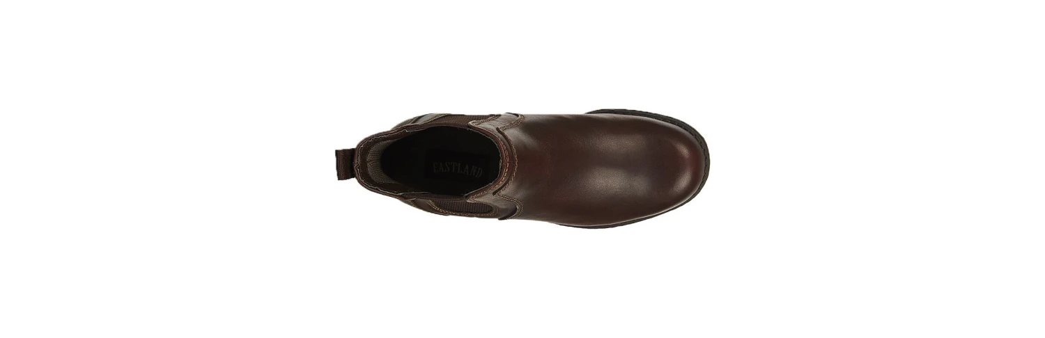 - Full grain leather upper in a casual pull-on ankle boot style with a round toe