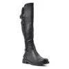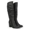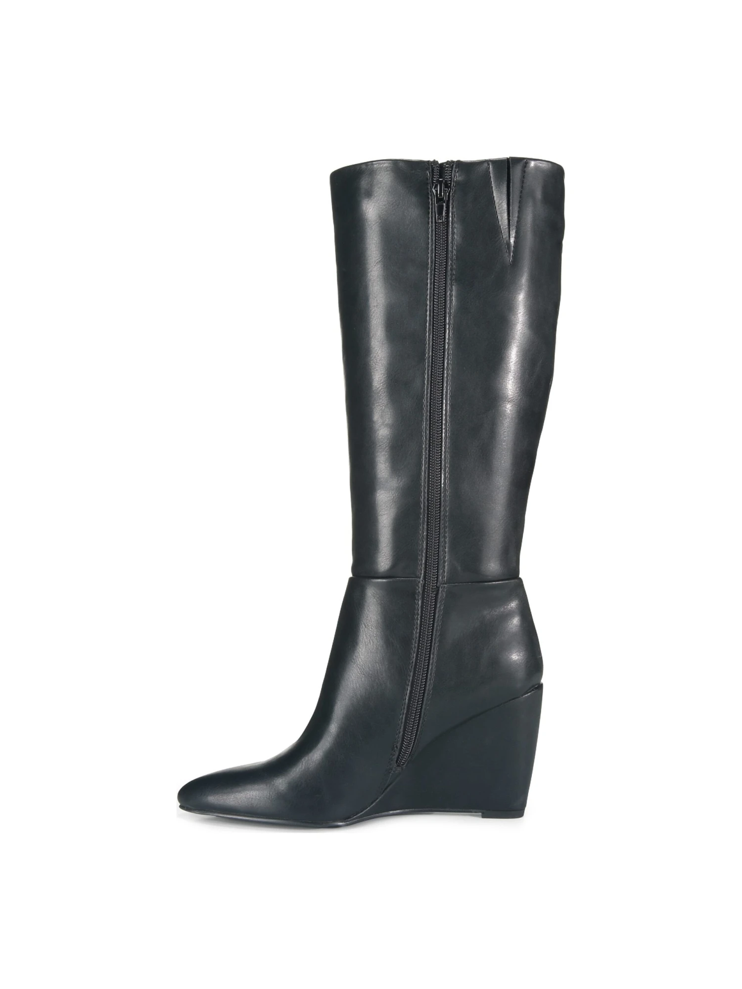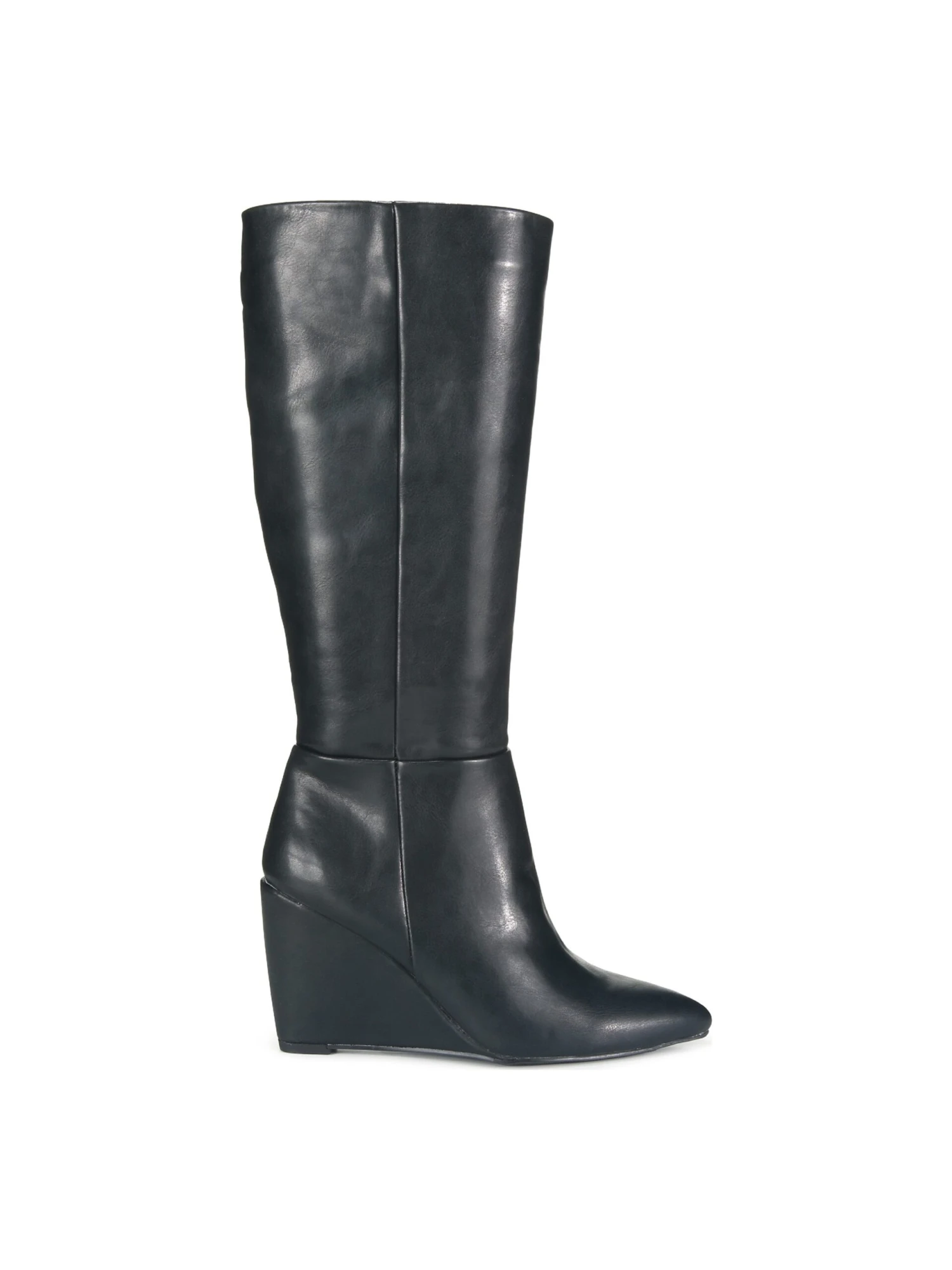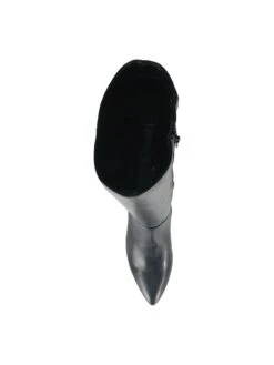 - Faux leather upper in a tall boot style with a pointed toe