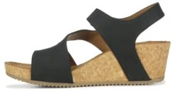 - Synthetic nubuck upper in a wedge sandal style with an open toe