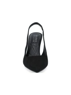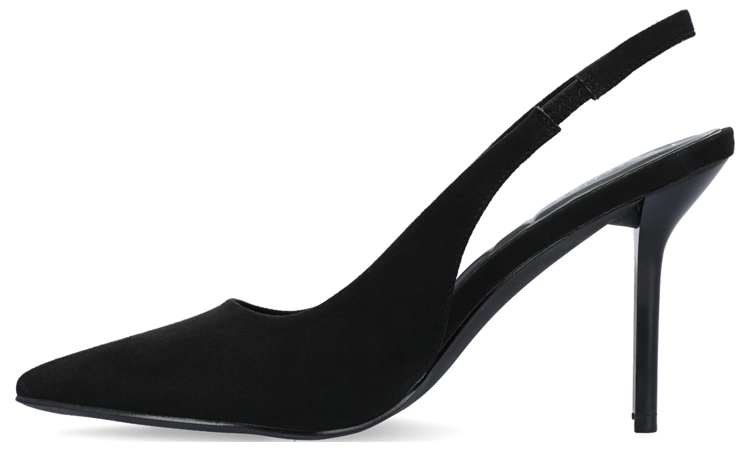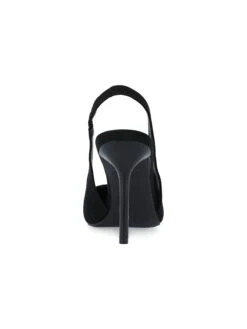 - Vegan leather upper in slingback pump with a pointed toe